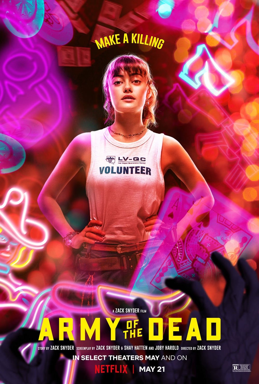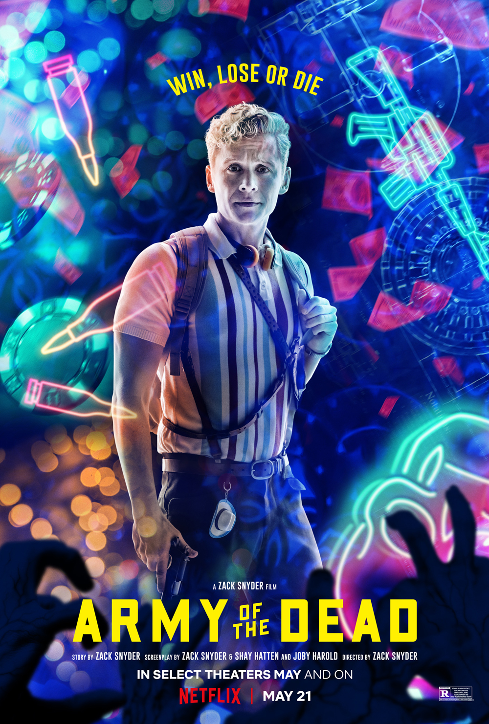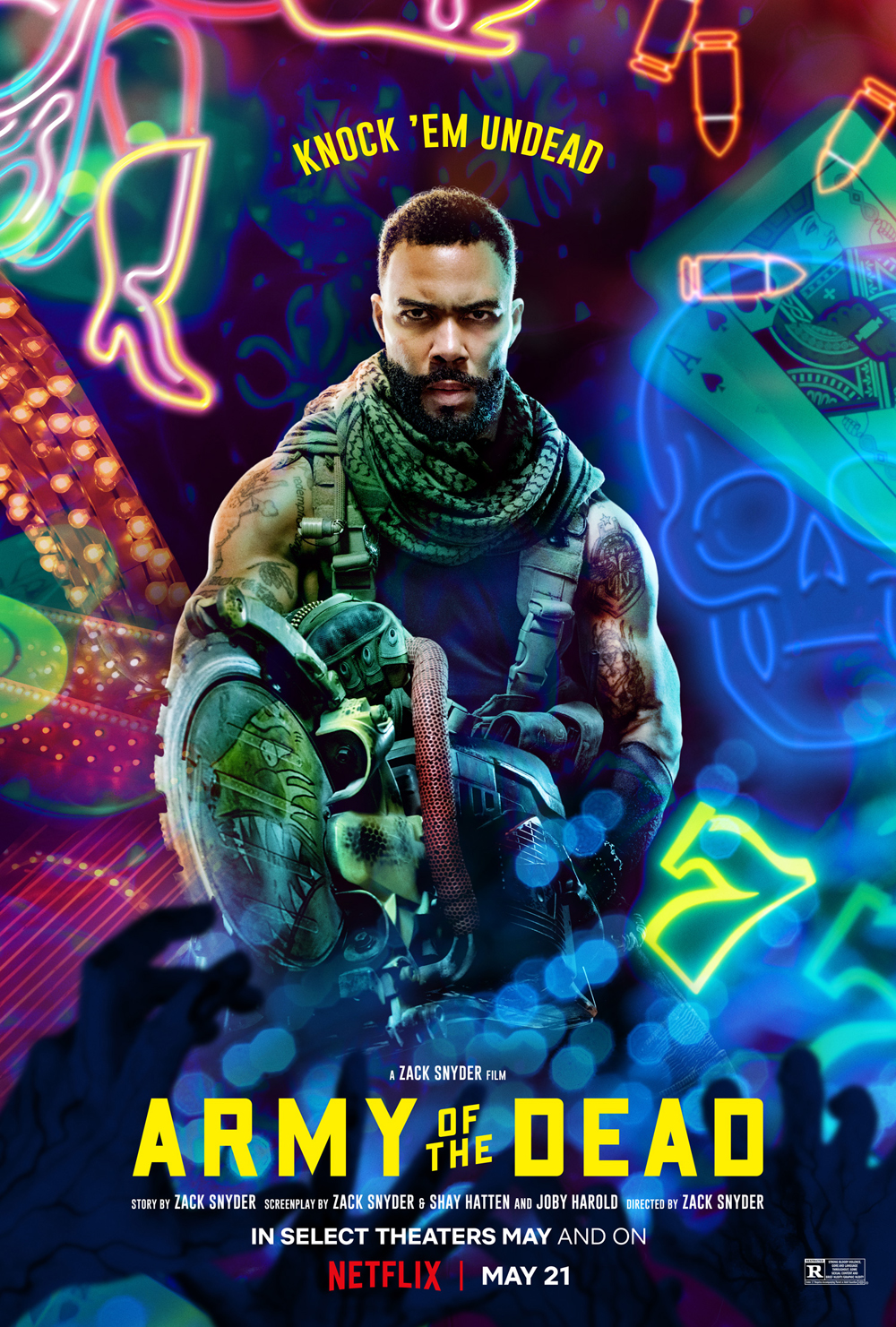 Netflix опубликовал пачку новых постеров фильма Зака Снайдера «Армия мертвецов». На них можно рассмотреть не только главных героев, но и их врага – короля зомби Зевса.