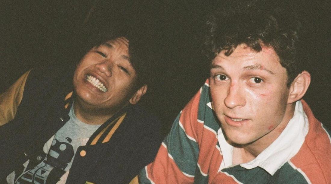 Снимками у себя в Instagram поделился Джейкоб Баталон, который играет лучшего друга супергероя Неда Лидса. На фотографиях, сделанных Зендаей, запечатлен он сам, а компанию актеру составил Том Холланд, который вернулся к роли Человека-паука. И на кадрах видно, что Паучок недавно с кем-то дрался: