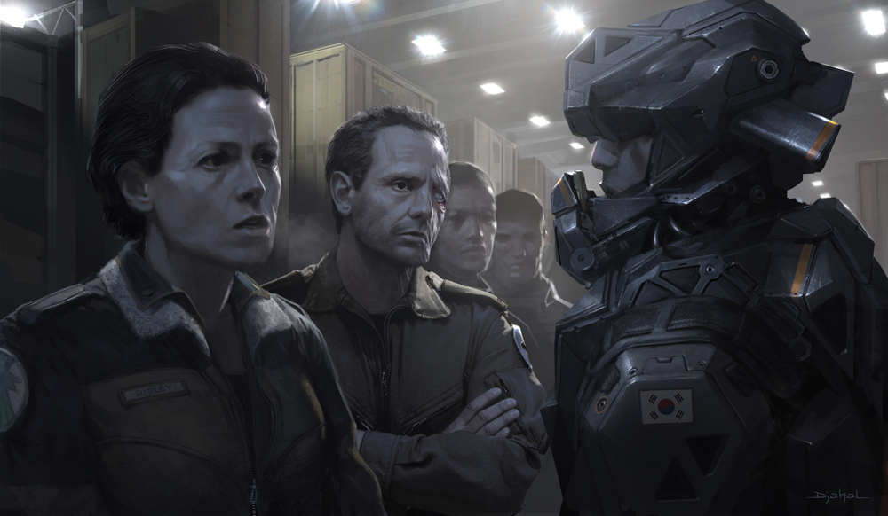 Артами поделился на своем сайте художник Джеффри Торенс, некоторые работы которого для проекта уже публиковали несколько лет назад. Мы можем рассмотреть образы Эллен Рипли (Уивер) и Дуэйна Хикса (Майкл Бин). А еще на концепт-артах изображены инопланетные монстры, новый андроид и солдаты с собакой.