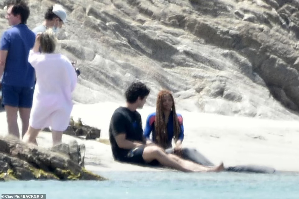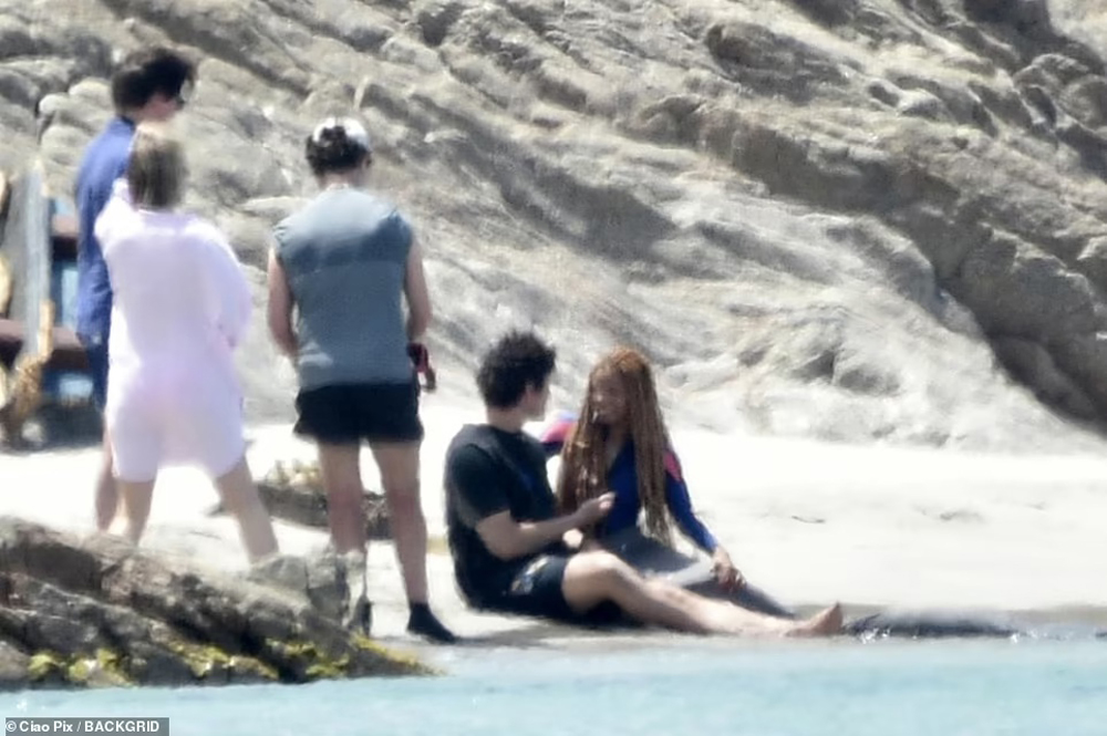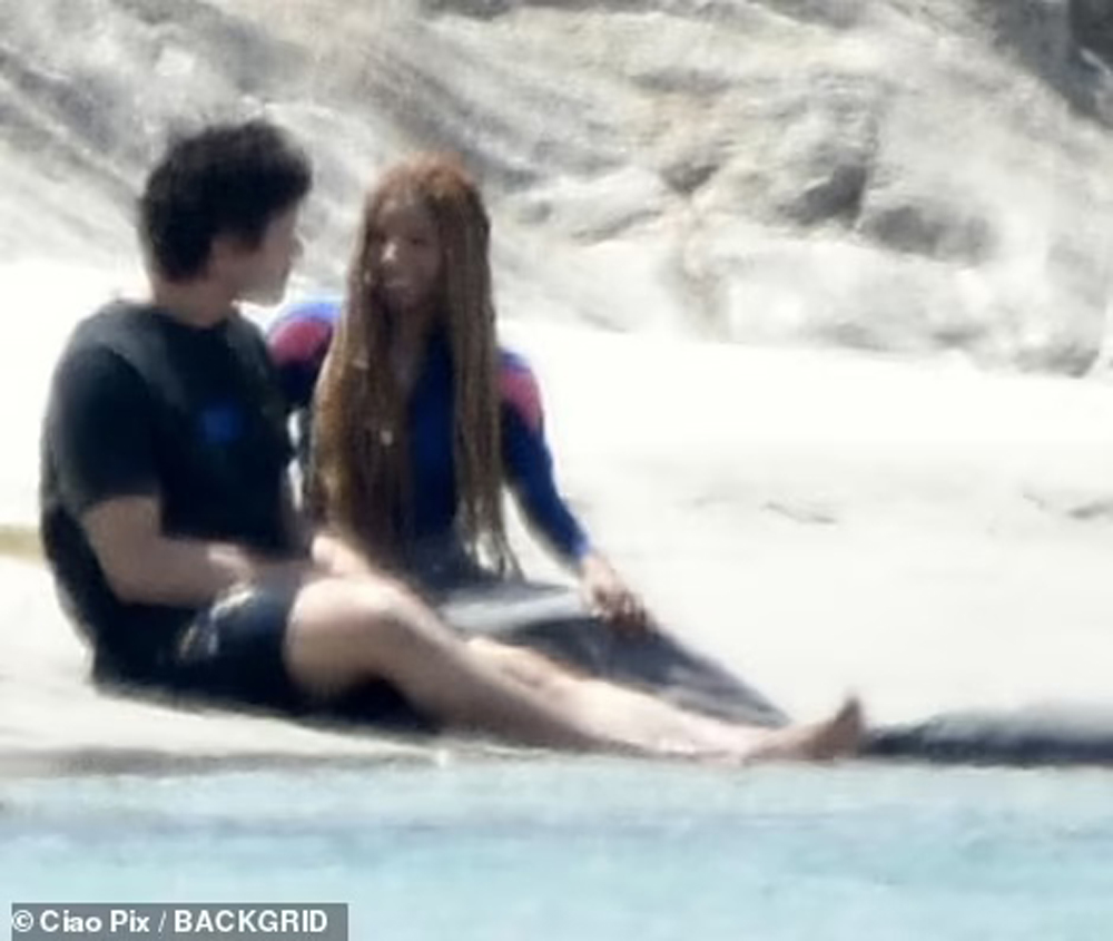 На снимках запечатлены Ариэль и ее возлюбленный принц Эрик в исполнении Холли Бэйли и Джоны Хауэра-Кинга. Актеры расположились на живописном итальянском пляже и, похоже, снимают ту культовую сцену в начале мультика, в которой Ариэль спасла Эрика.