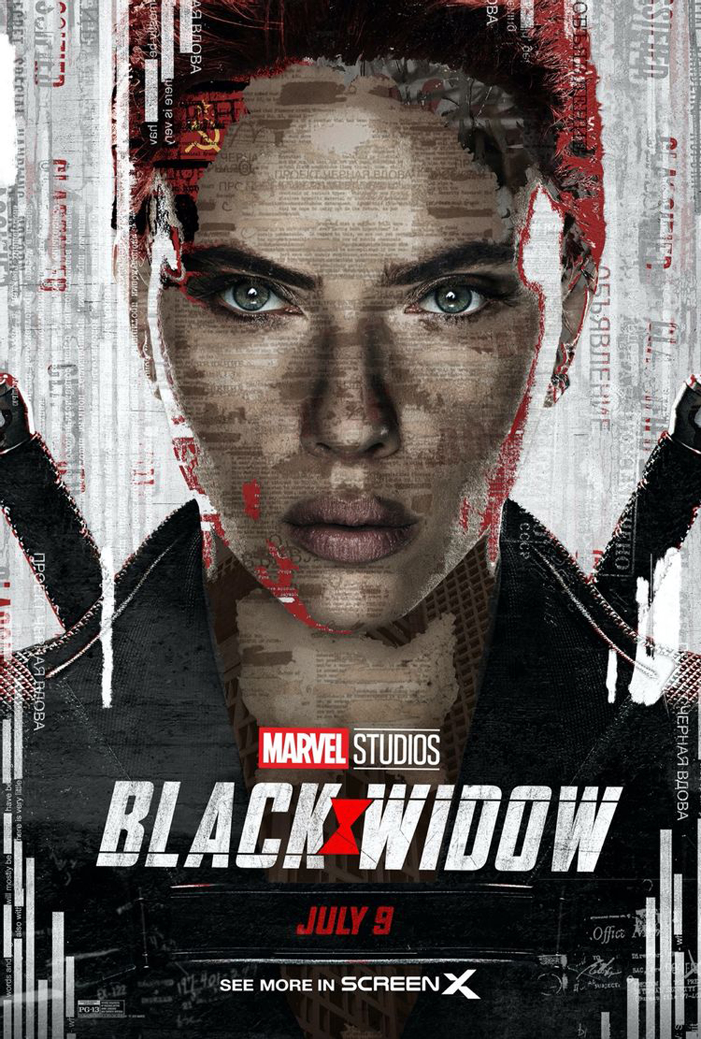На постерах собрались главные герои, им компанию составила команда Черных Вдов. А на сольном постере Наташи можно увидеть разные записи, видимо, посвященные ее прошлому, когда героиня была наемной убийцей и шпионкой Красной комнаты.