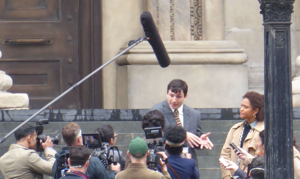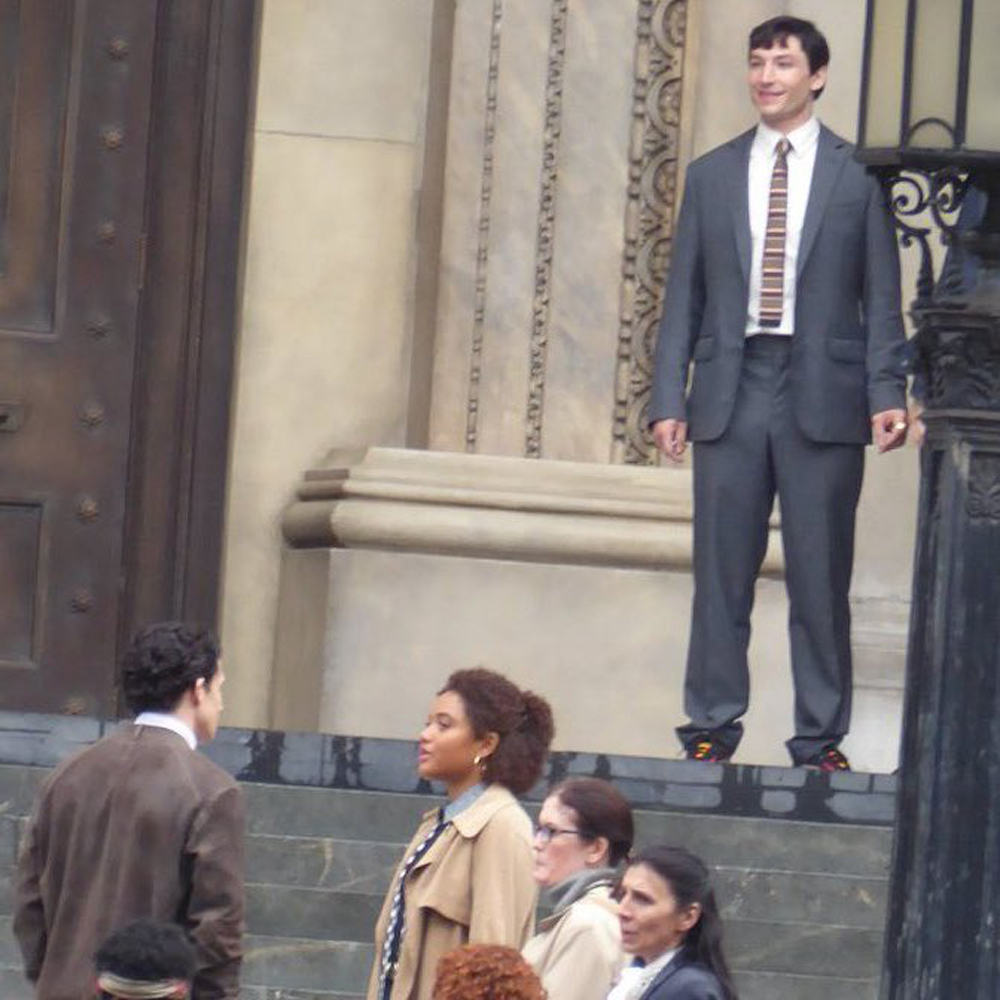 На снимках Барри Аллен в исполнении Эзры Миллера и его возлюбленная Айрис Уэст, к роли которой вернулась Кирси Клемонс, общаются с прессой. Вполне вероятно, Барри все еще пытается очистить имя своего отца Генри Аллена (Рон Ливингстон).