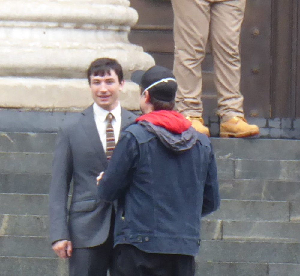 Еще на площадке засветился Бэтмен. Брюс Уэйн тоже предстал в деловом костюме, и это Темный рыцарь версии Майкла Китона. В киновселенной DC Бэтмена играет Бен Аффлек, который тоже будет в фильме, так что, может быть, это съемки сцены в альтернативной реальности.