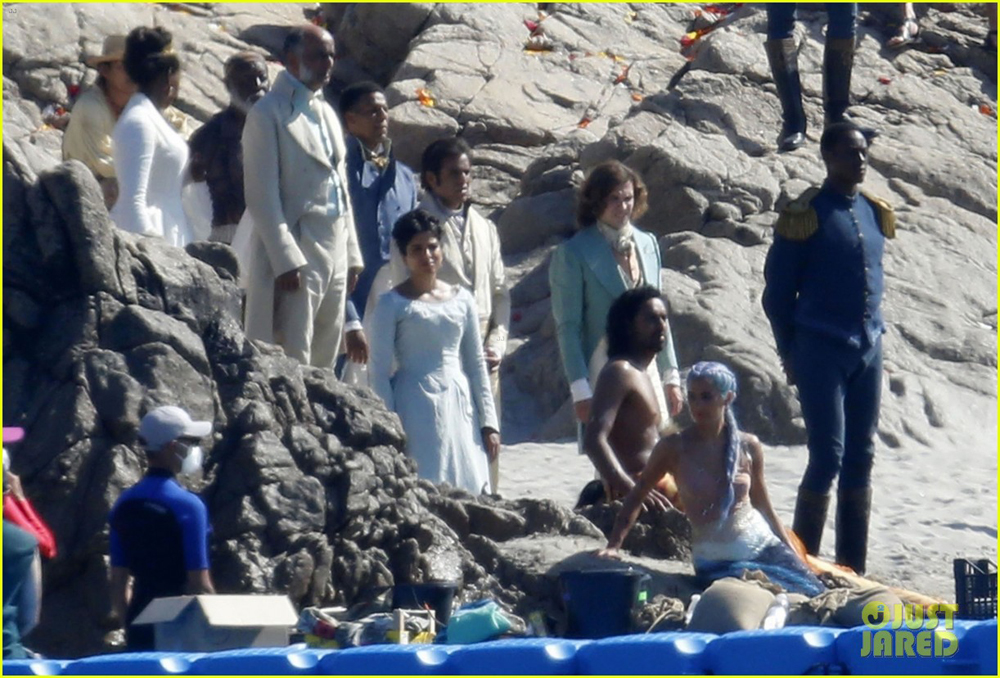 Портал Just Jared опубликовал новые кадры со съемок фильма «Русалочка» Disney. Фанаты уверены, что это съемки культовой сцены с почти поцелуем Ариэль и принца Эрика.