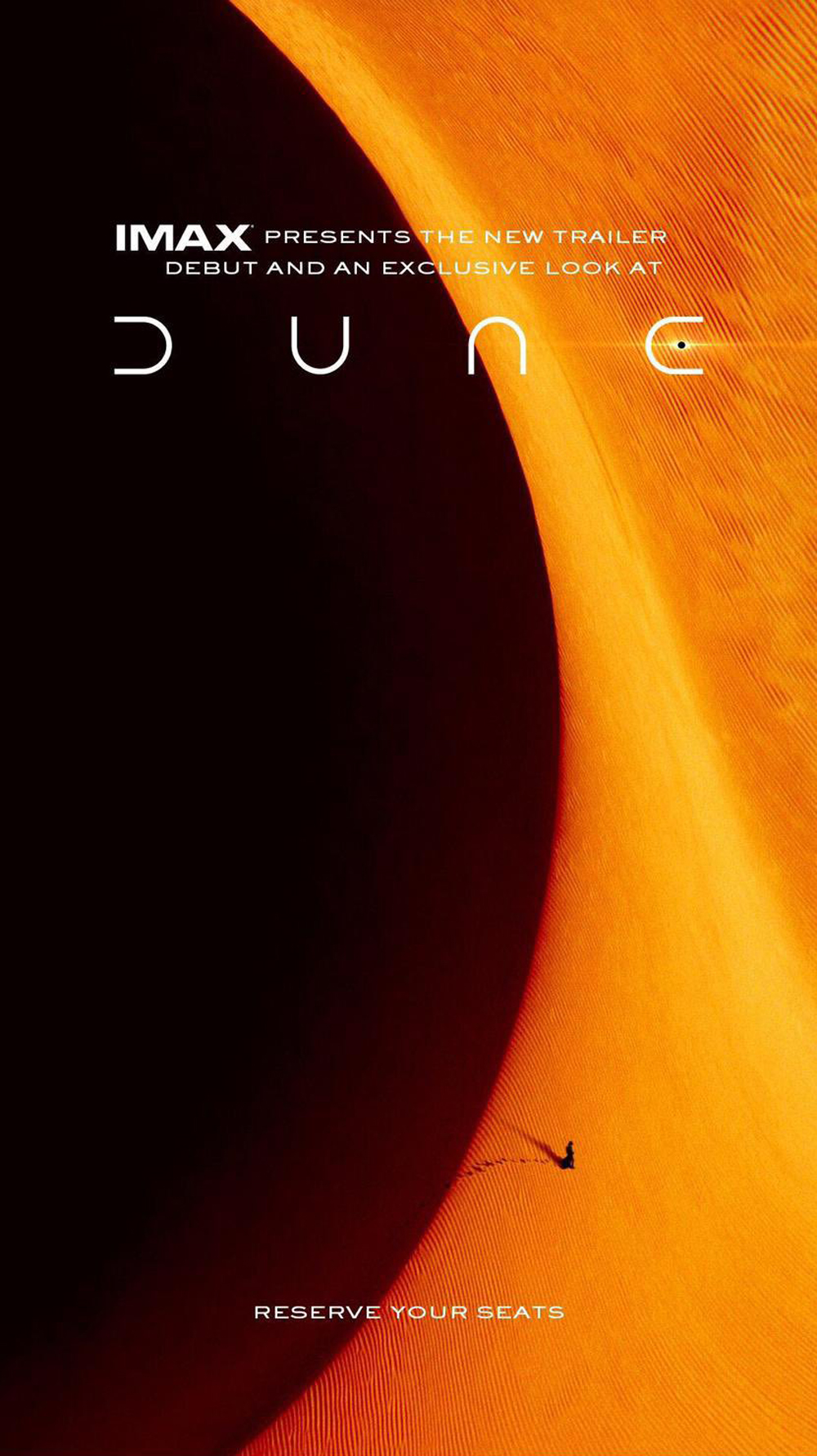 YOUR DESTINY AWAITS. @IMAX presents: An Exclusive Look at DUNE featuring never-before-seen footage, music and a first look at the New Trailer. Reserve your seats NOW: https://t.co/IRn1Ta5mtp pic.twitter.com/iriDdfsntX