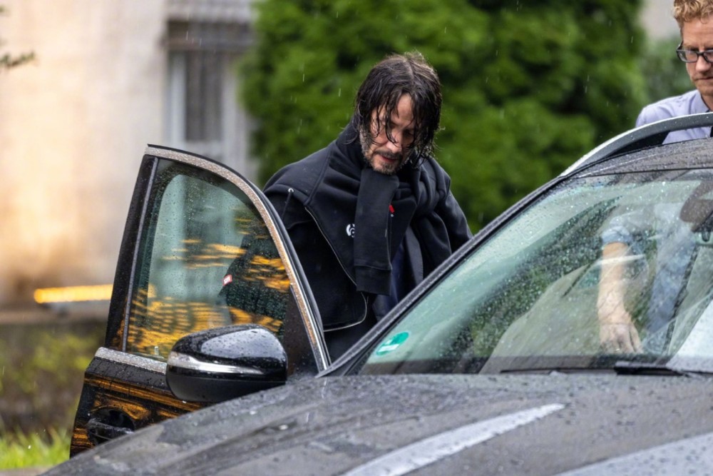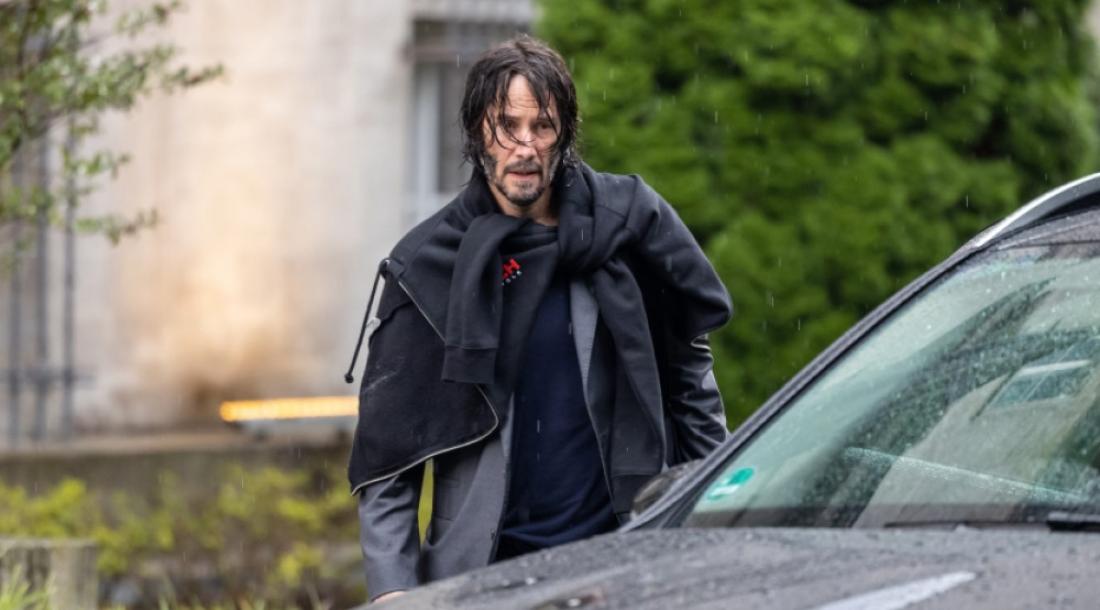 На снимках запечатлен сам Ривз, который вернулся к роли наемного убийцы Джона Уика. Актер направляется к машине и по пути общается с участником съемочной группы. Киану Ривз попал под дождь, но он остался невозмутимым. Да и выглядит так, будто уже снимает какую-то особо крутую сцену под проливным дождем. На артисте стильный костюм, который он прикрыл толстовкой.