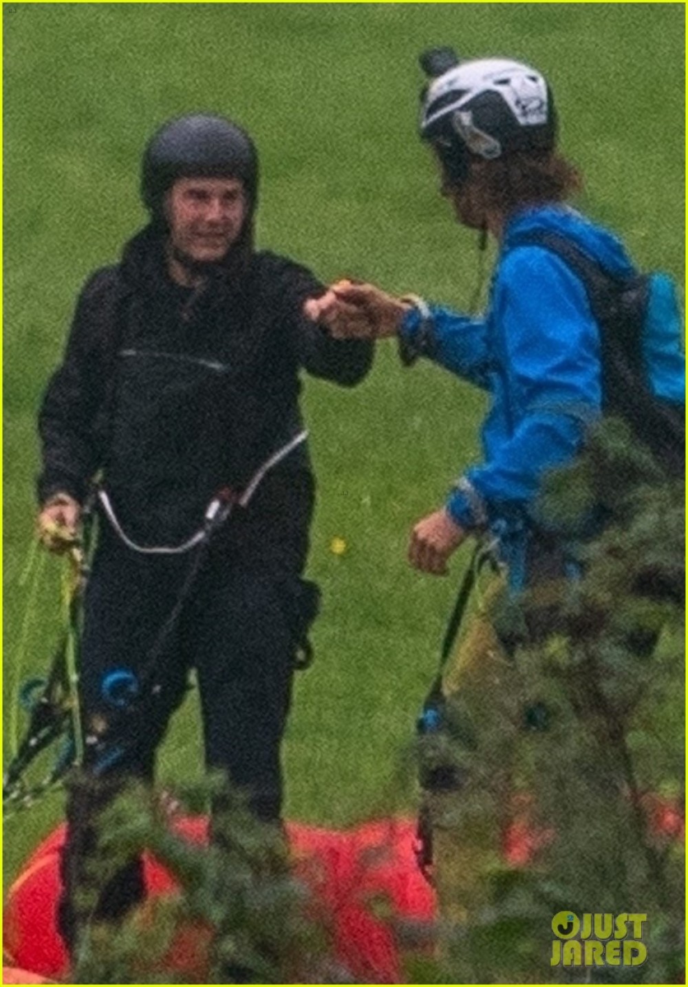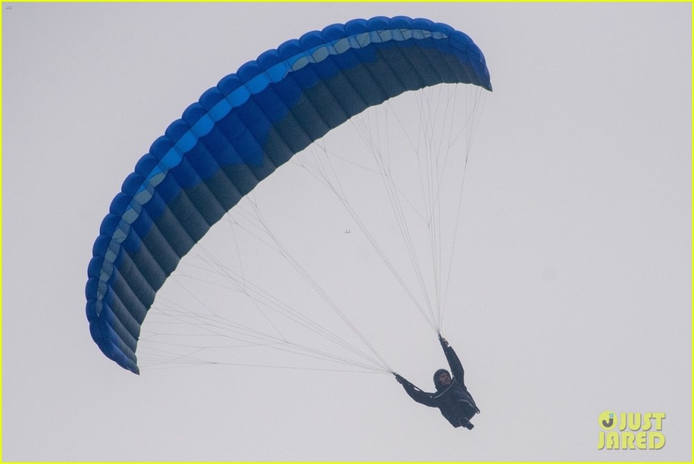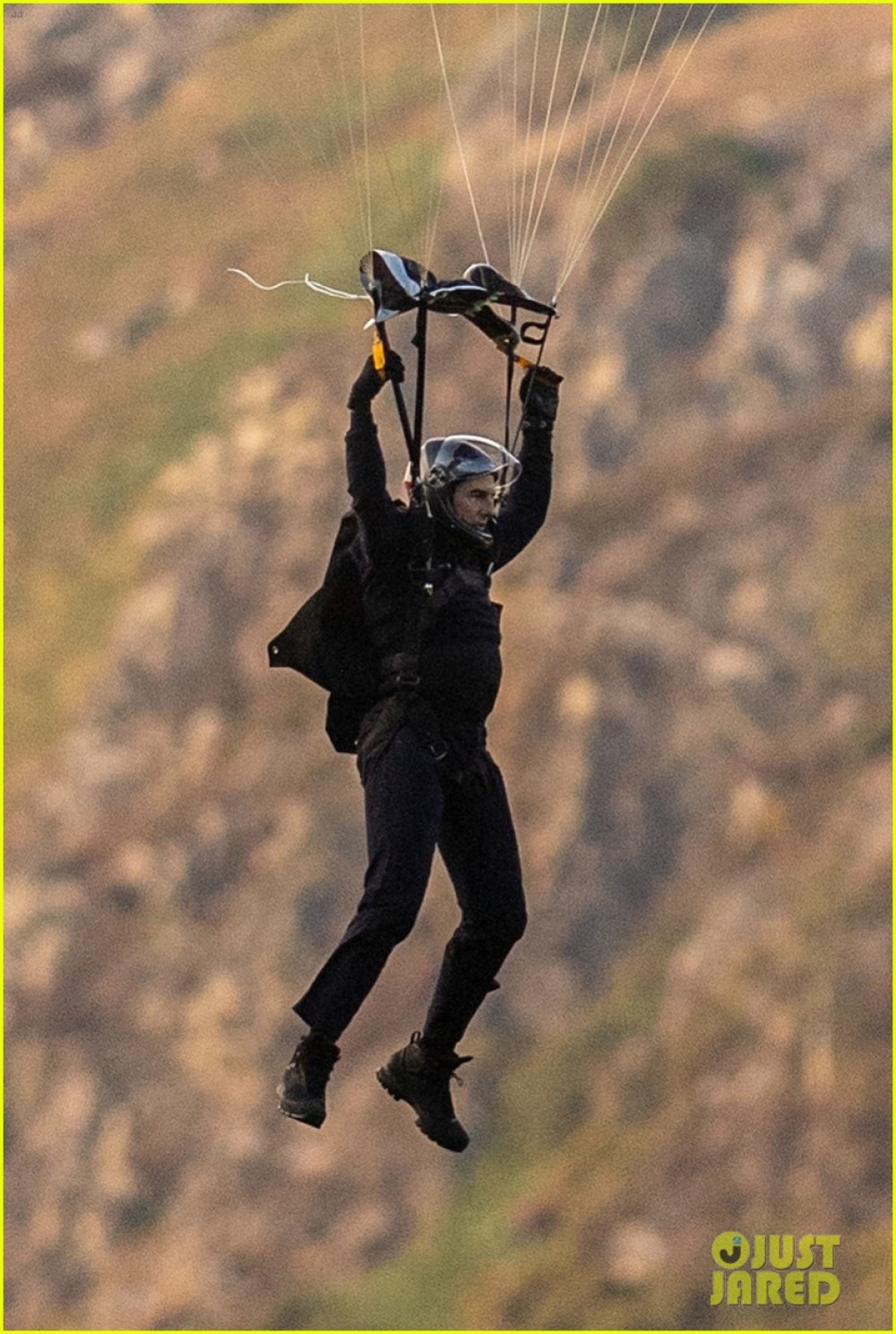 Портал Just Jared поделился свежей порцией кадров со съемок фильма «Миссия невыполнима 7». На снимках можно увидеть, как Том Круз прыгает с парашютом с вертолета.