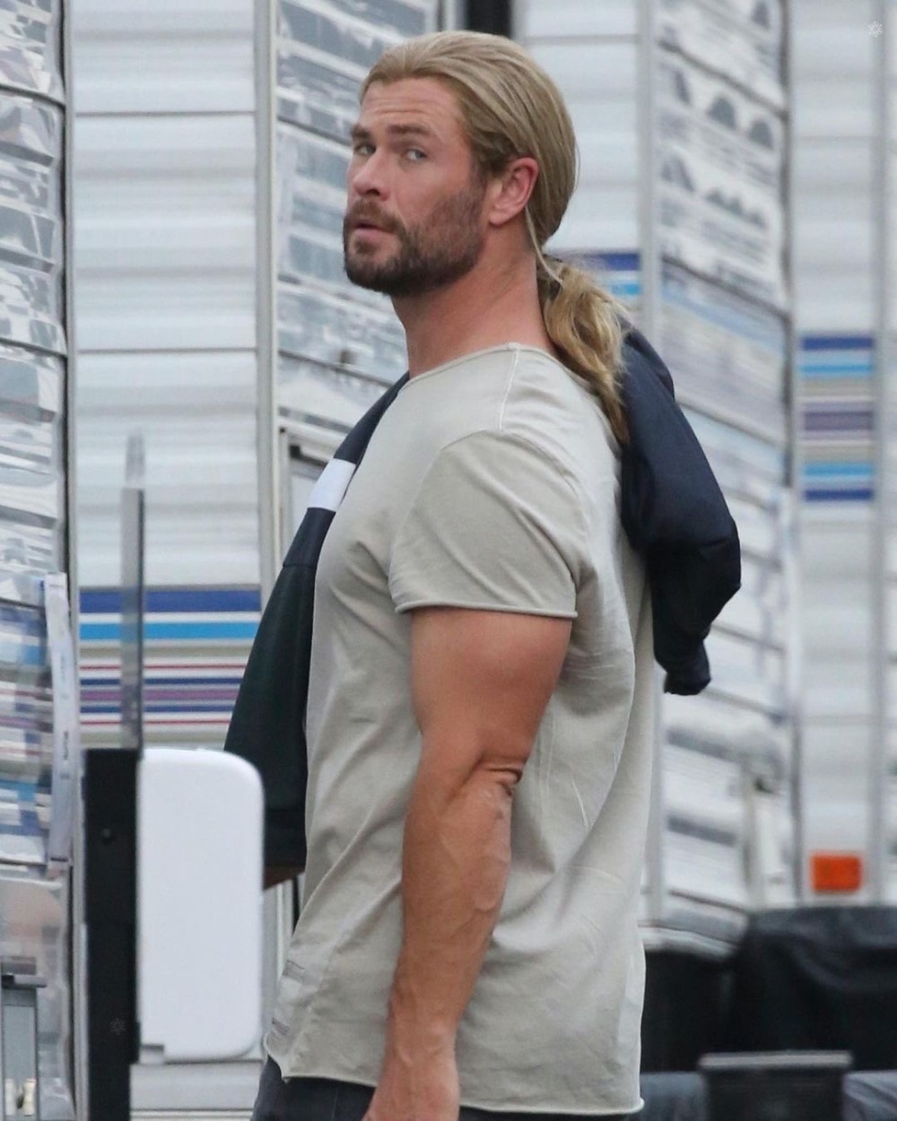 На свежих снимках запечатлены сами Тор и Джейн. Герои выглядят примерно так же, какими они были во втором «Торе». Это подтверждает, что в новом фильме будет флэшбек, который перенесет зрителей во времена событий «Царства тьмы».