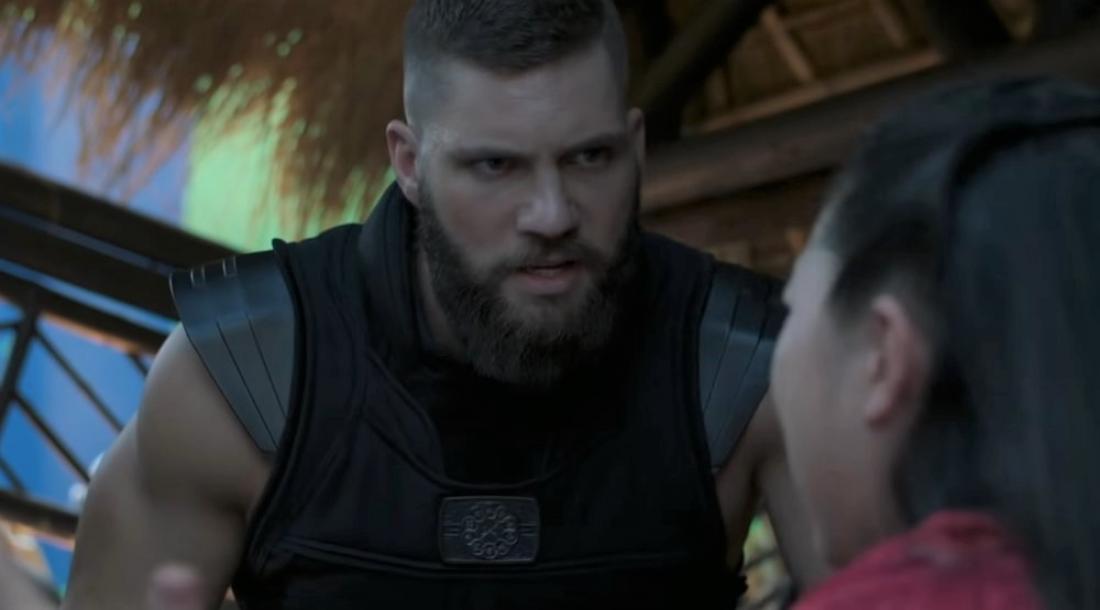 В ролике показали момент из финальной битвы героев с монстрами в деревне Та Ло. Бритвенный кулак и другие наемники Вэньву (Тони Люн Чу Вай) из организации «Десять колец» ближе к развязке картины объединились с командой Шан-Чи (Симу Лю), чтобы одолеть общих врагов.