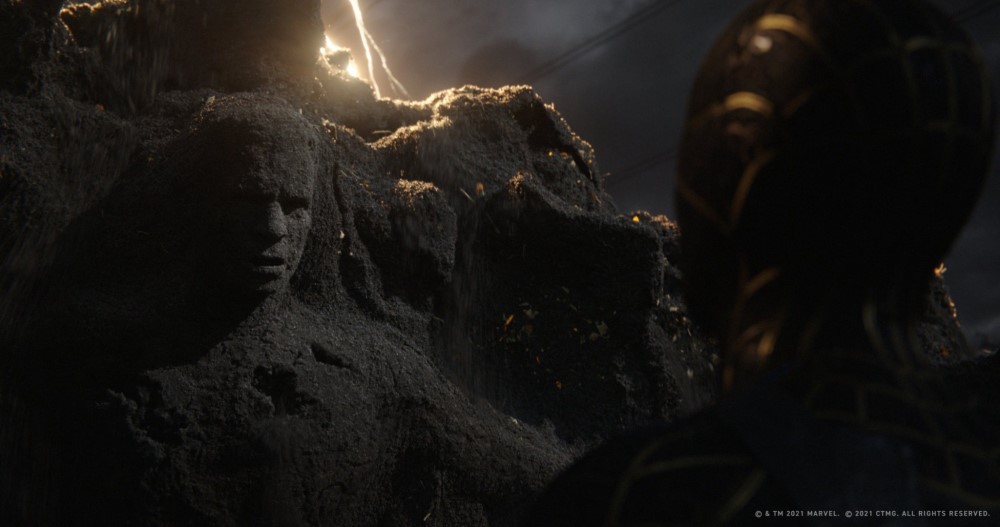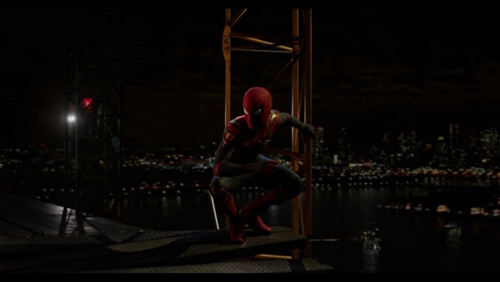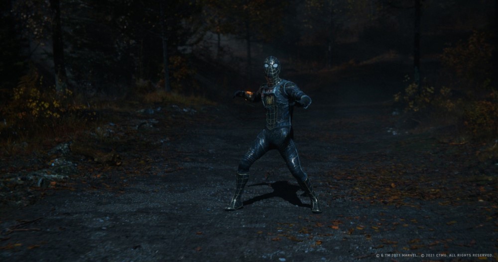 На кадрах мы можем вновь увидеть черный костюм Человека-паука основной реальности киновселенной Marvel. По сюжету Питер вывернул наизнанку свой костюм, когда его запачкали краской. На кадре хорошо видны проводки внутри костюма Паучка.