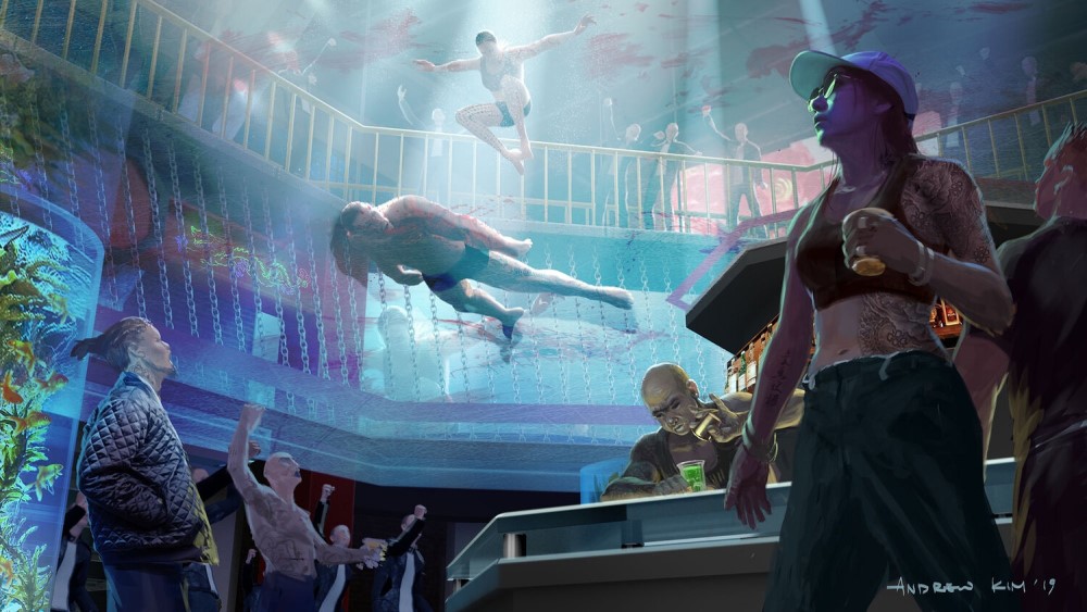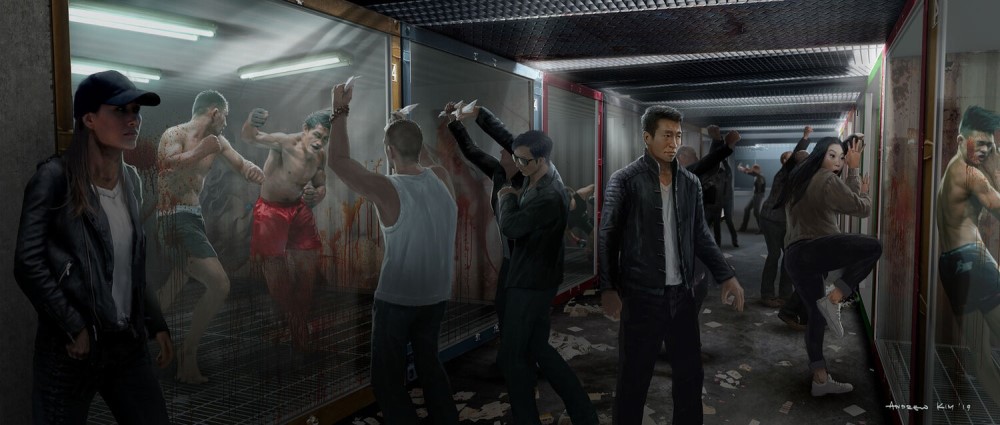 Изображением поделился у себя на сайте художник концепт-артов Эндрю Ким. На фото можно увидеть, что Дэдпул мог выступить одним из участников поединков в бойцовском клубе Сялин (Мэнъэр Чжан) – сестры Шан-Чи (Симу Лю). Уэйд Уилсон столкнулся бы на арене с Проксимой Полночной из команды Таноса – злодейку мы видели в фильмах «Мстители: Война бесконечности» и «Мстители: Финал».