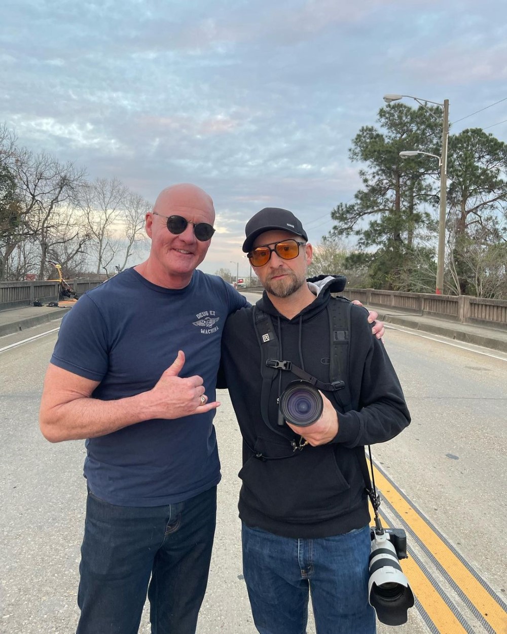 И фото выложил актер Джеймс Джуд Кортни, который в паре с Ником Кастлом играет маньяка Майкла Майерса. Компанию Кортни на снимке составляет Райан Грин, которого актер назвал блестящим фотографом.