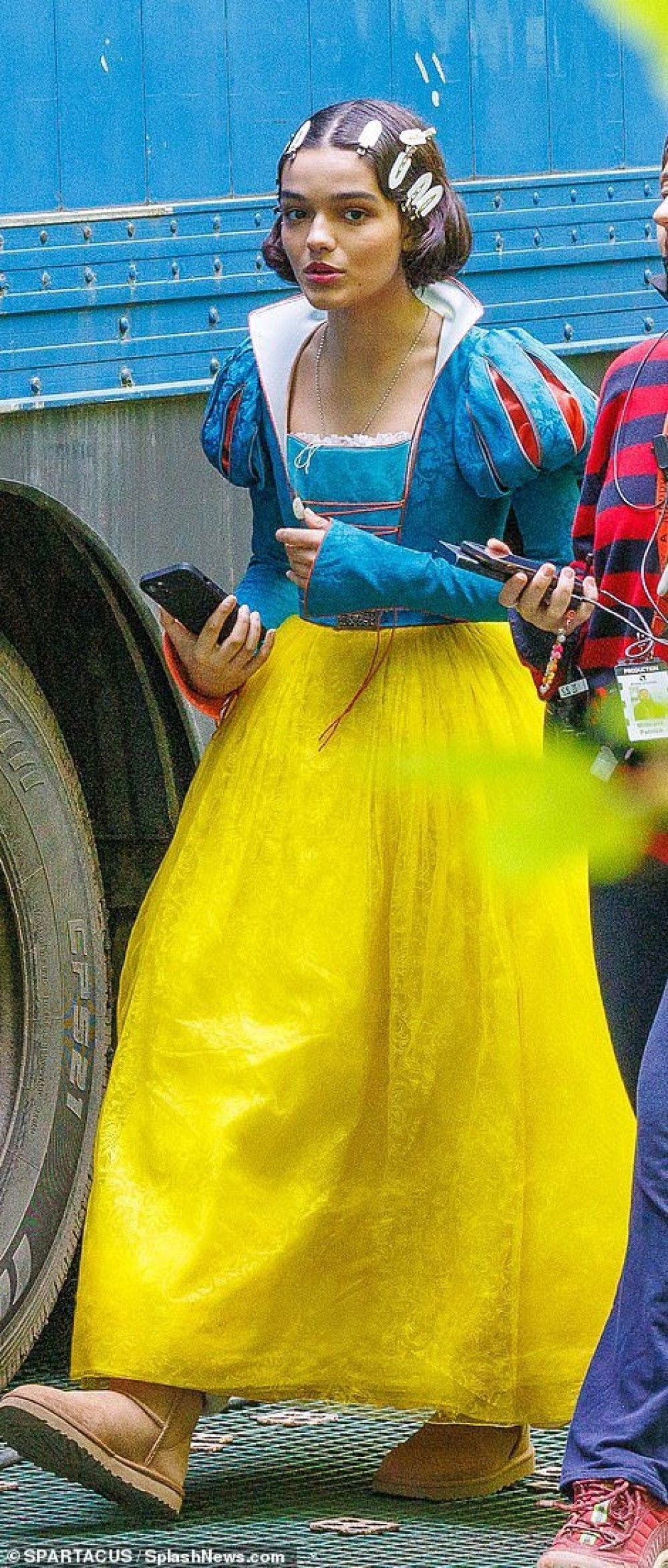 Свежие фото опубликовали на просторах Twitter. По снимкам видно, что образ у Белоснежки в игровом ремейке мультфильма 1937 года каноничный. На Зеглер культовое яркое платье принцессы, выполненное в желтом, синем и красном цветах. У наряда пышные рукава, длинная струящаяся юбка и классический белый воротник. Прическа у Зеглер тоже фирменная для Белоснежки.