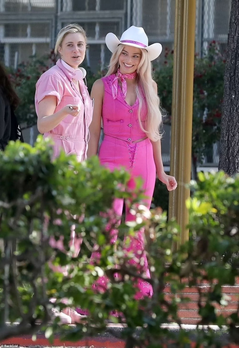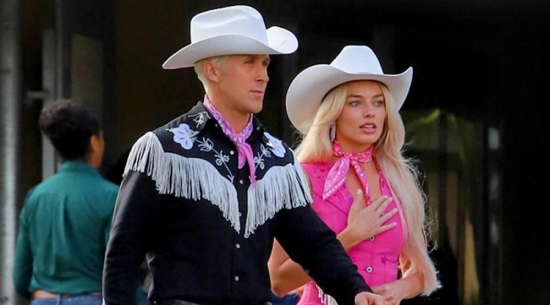 В Сеть выложили пачку свежих кадров со съемок фильма «Барби». На снимках Марго Робби и Райан Гослинг прогуливаются в ярких костюмах и ковбойских шляпах.
