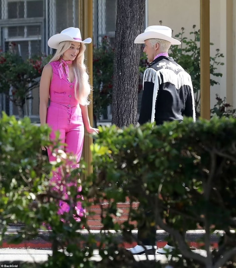 Судя по всему, на снимках Барби и Кен идут на какое-то тематическое мероприятие, поэтому так нарядились. Весь фильм они в ковбойских костюмах красоваться не будут. На других кадрах Барби засветилась в голубом наряде в стиле 60-х, а Кен – в джинсовом костюме.