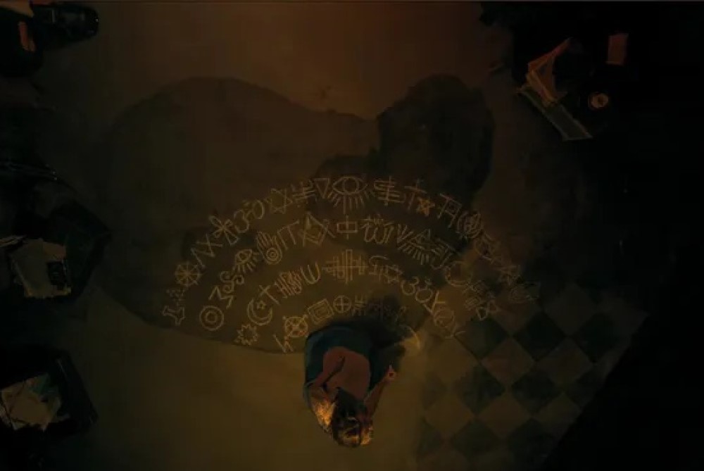 На полу перед кугельблицем Грейс написала несколько случайных слов и символов из разных культур и религий. Можно увидеть звезды, кресты и иероглифы. Героиня просто не знает, как именно следует поклоняться кугельблицу.