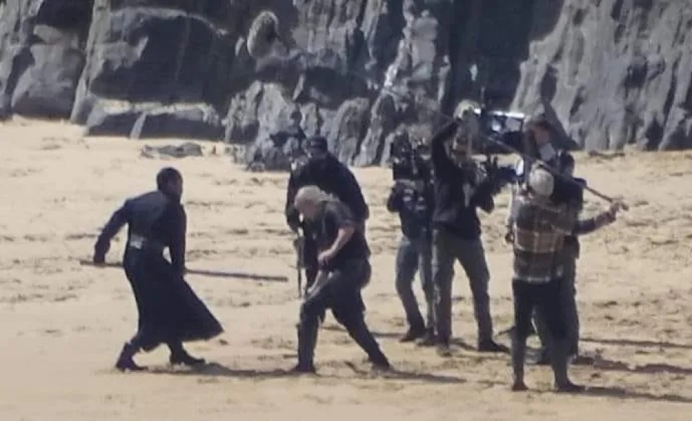 Фотографиями поделился портал Redanian Intelligence. На кадрах можно увидеть столкновение героев на пляже. Судя по всему, в какой-то момент Вильгефорцу (Махеш Джаду) удастся ранить Геральта (Генри Кавилл). На фото с Генри Кавиллом дерется дублер Махеша Джаду.