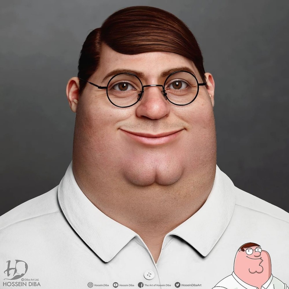 «Гриффины» оказались очень успешными, однако по шоу так и не сняли полнометражный мультик – как это сделали создатели «Симпсонов» и «Закусочной Боба». Игровых фильмов по «Гриффинам» тоже нет. Вот художник Хоссейн Диба и решил пофантазировать на тему того, как мог выглядеть Питер Гриффин в фильме «Гриффины», который хотели бы увидеть фанаты.