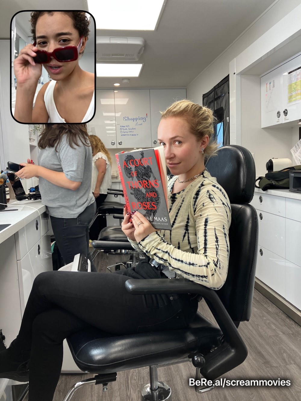Снимок опубликовали на официальной странице «Крика» в Twitter. На фото можно увидеть Хайден Панеттьери и Джасмин Савой Браун, которая вернулась к роли Минди Микс-Мартин из пятого «Крика». Похоже, актрисы находятся в гримерке.