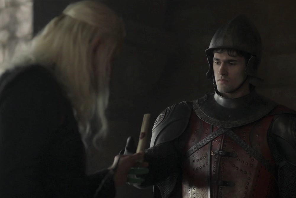 Создатели «Дома дракона» пошли еще дальше и волшебным образом «исцелили» короля Визериса I Таргариена (Пэдди Консидайн). По сюжету к 3 эпизоду правитель Вестероса из-за болезни теряет два пальца. Однако в одной сцене рука Визериса оказывается вполне себе здоровой – но подозрительно зеленой. Герой передает солдату послание, которое нужно доставить принцу Деймону (Мэтт Смит), брату короля. И на руке актера Пэдди Консидайна можно увидеть зеленую перчатку, на которую создатели, видимо, забыли наложить визуальные эффекты при монтаже.