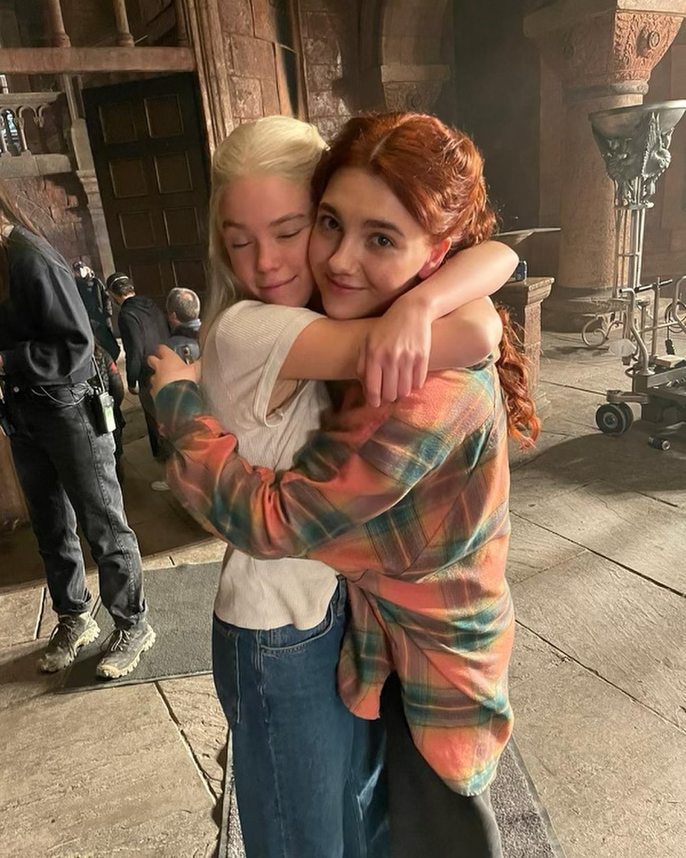 Роли молодых Рейниры и Алисенты Хайтауэр в первых пяти сериях исполнили Милли Олкок и Эмили Кэри. В оставшихся пяти эпизодах будут героини постарше, которых сыграли Эмма Д’Арси (Рейнира) и Оливия Кук (Алисента). Кстати, Милли Олкок в честь завершения своего приключения в Вестеросе выложила в Instagram забавные кадры со съемок. Актерам явно было очень весело работать на съемочной площадке.