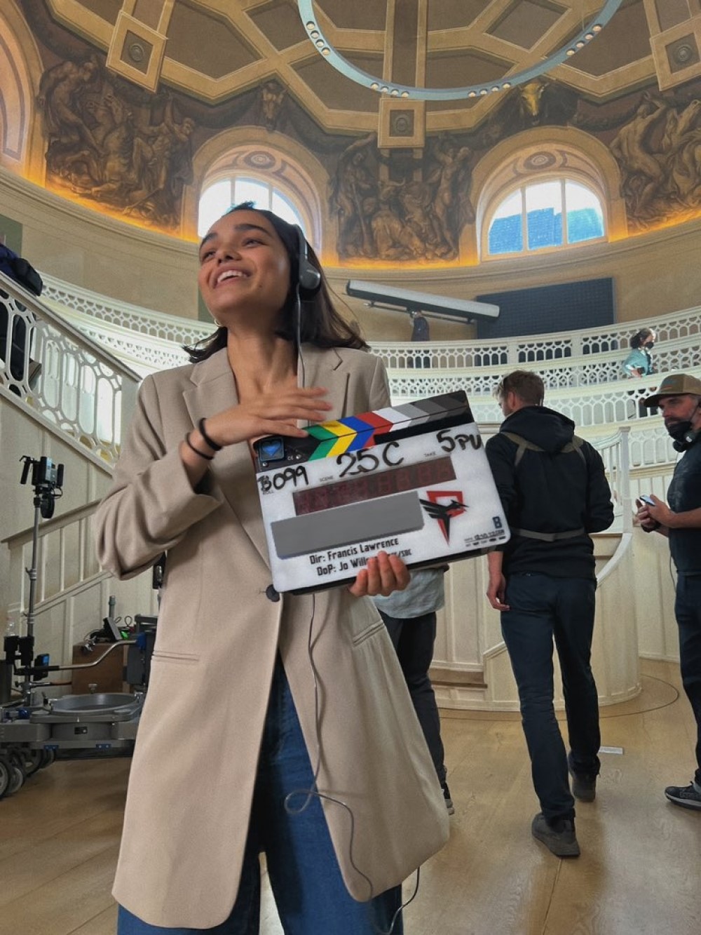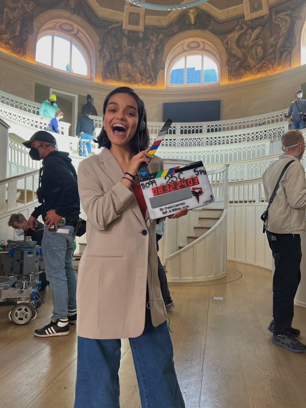 Скорее всего, на фото запечатлена Академия Капитолия. Это же место Рэйчел Зеглер показала в видео со съемок. В ролике также можно заменить Питера Динклэйджа и Тома Блита, которые играют декана учреждения Каску Хайботтома и главного героя фильма Кориолана Сноу – будущего тиранического президента Панема. Сама же Зеглер исполняет роль Люси Грей Бэйрд из обедневшего дистрикта 12.