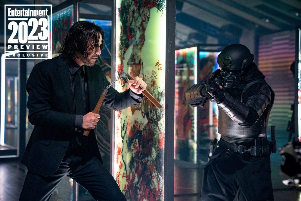 Lionsgate представила новый кадр из грядущего боевика «Джон Уик 4» с Киану Ривзом главной роли. На снимке неубиваемый наемник Джон Уик по прозвищу Баба-Яга атакует вооруженного автоматом врага – в руках у героя только нунчаки.