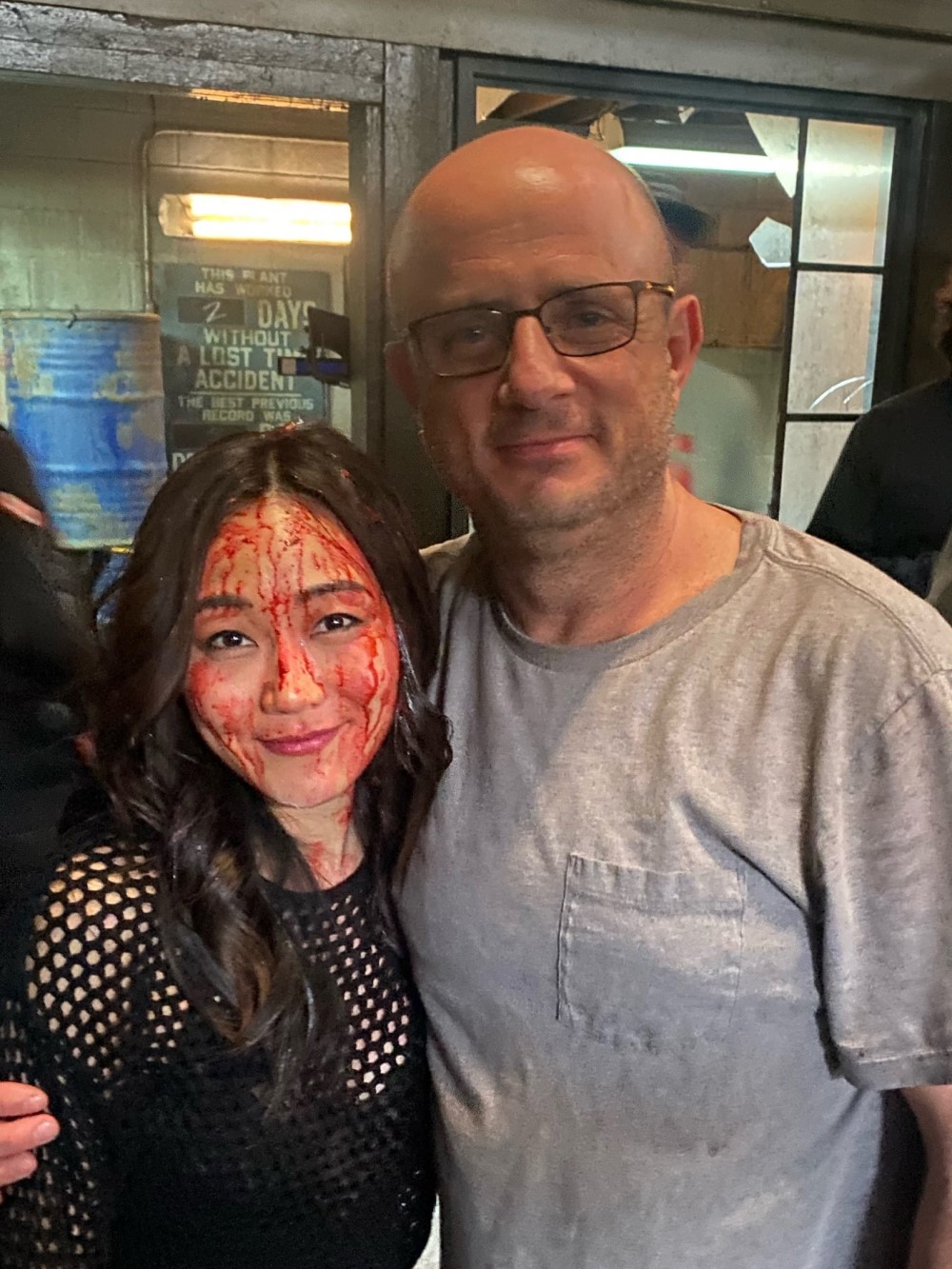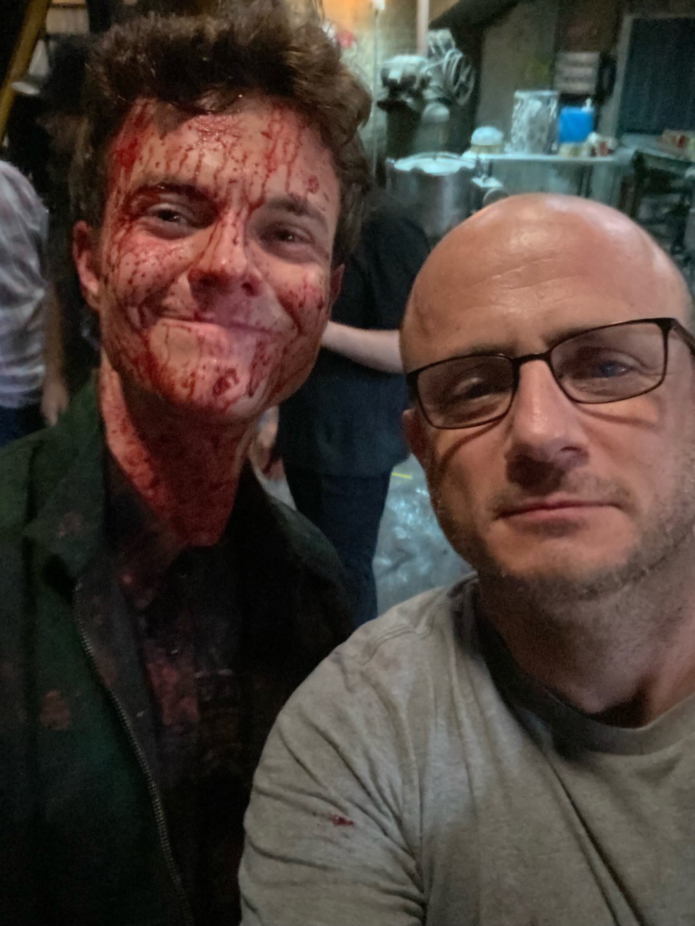 Эрик Крипке опубликовал пару снимков, на которых ему компанию составляют Джек Куэйд и Карен Фукухара – они играют Хьюи Кэмпбелла и Кимико Миясиро из отряда Пацанов. Судя по обилию искусственной крови на лицах актеров, они снимались в какой-то очень жесткой сцене. В комментарии к посту Крипке написал: