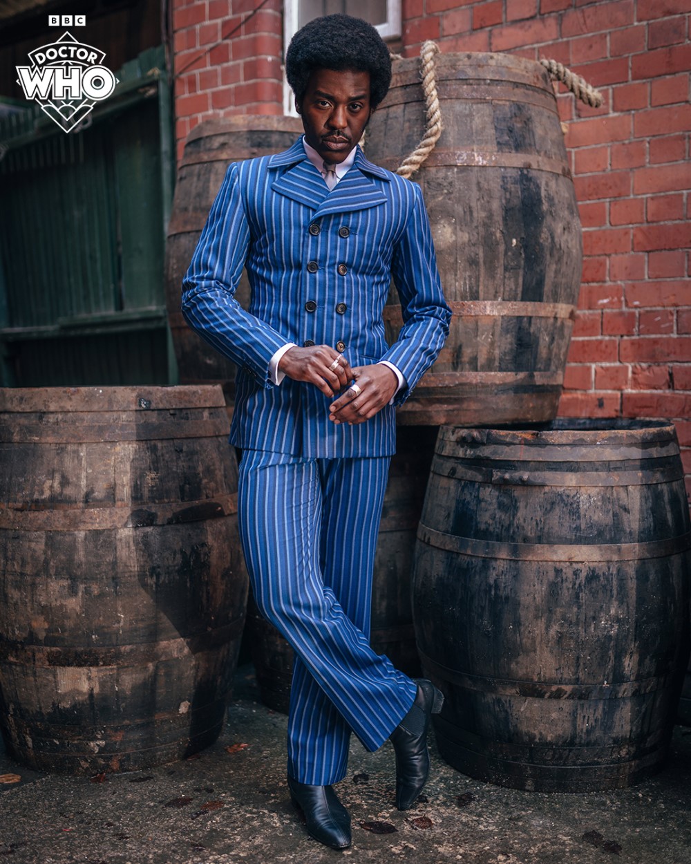 Свежие кадры опубликовали на официальной странице «Доктора Кто» в Twitter. На снимках Доктор в исполнении звезды хитового сериала «Сексуальное просвещение» Шути Гатвы предстал в полосатом костюме и с пышной прической. Компанию Повелителю Времени составила его спутница Руби Сандей, которую сыграла малоизвестная актриса Милли Гибсон («Улицы коронации»). Руби красуется в черно-белом платье.