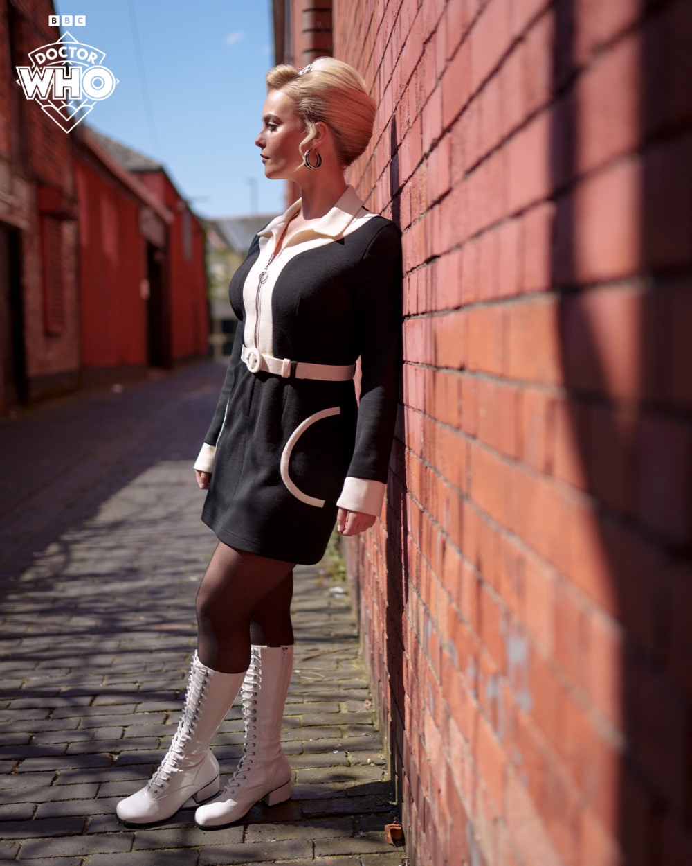 «Что и когда здесь происходит? Первые кадры, на которых Доктор и Руби прибывают в свингующие 60-е! Продолжаются съемки новой серии».