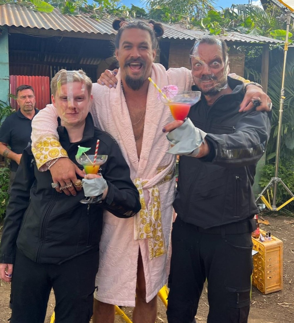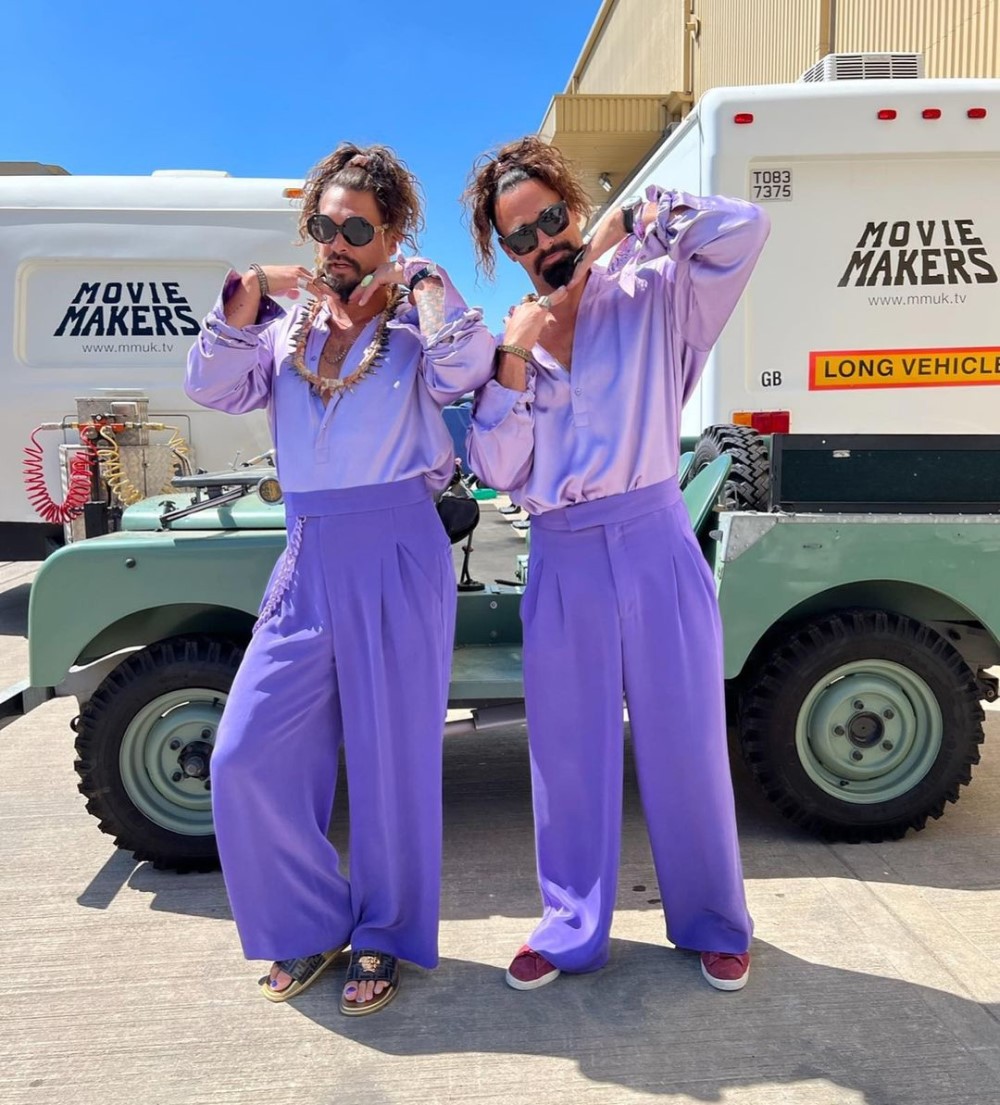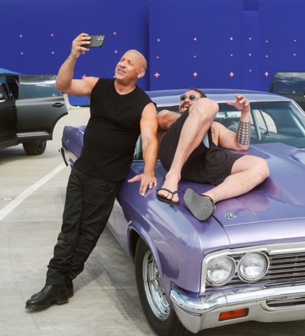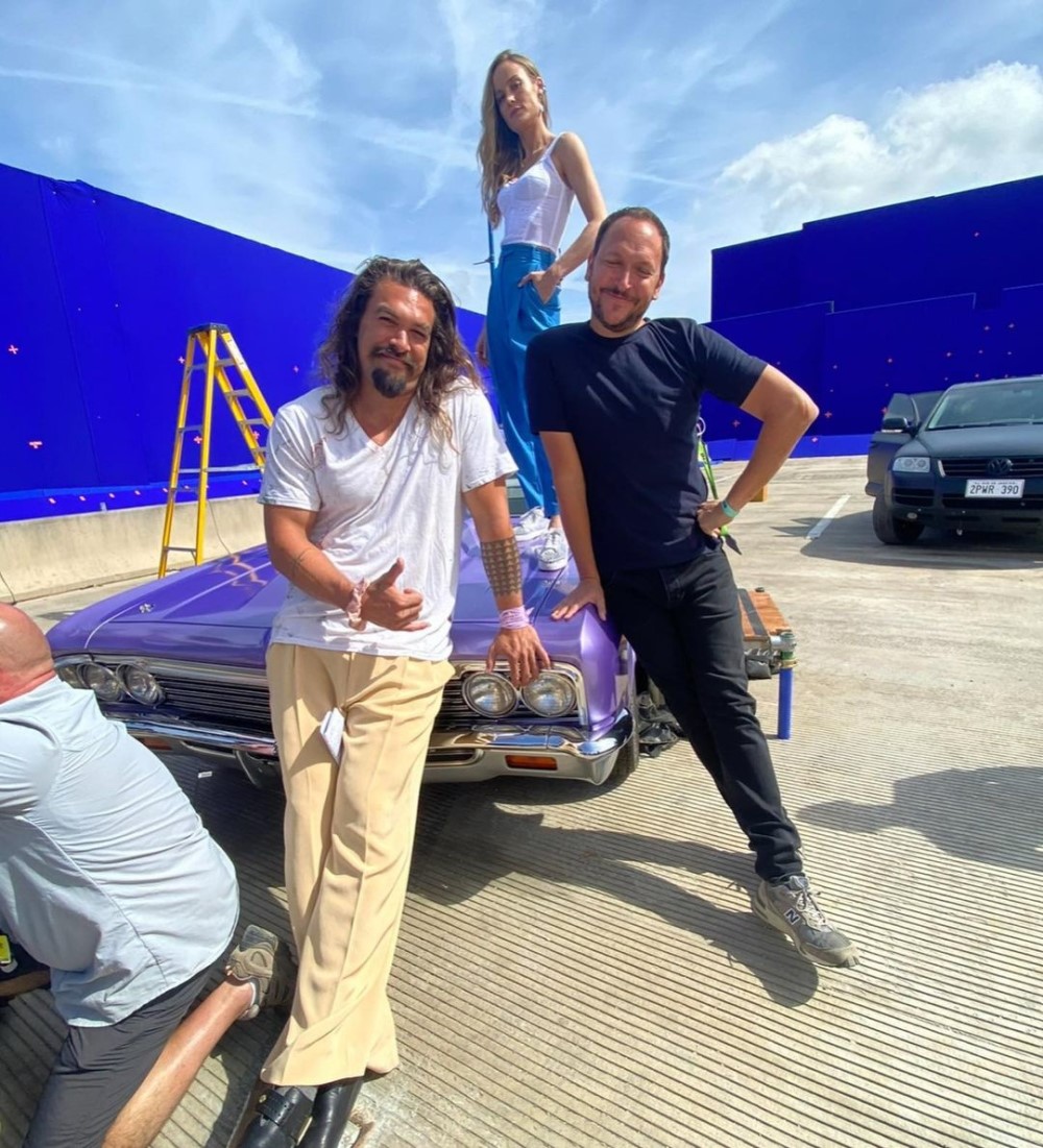 Момоа опубликовал и множество других любопытных снимков. На них компанию актеру составили Вин Дизель, Шарлиз Терон (играет Сайфер), Мишель Родригес (Летти Ортис), Джон Сина (Джейкоб Торетто), Бри Ларсон (Тесс), режиссер Луи Летерье и дублер Момоа. Есть и фото, на котором Момоа и его дублер позируют в сиреневых костюмах.