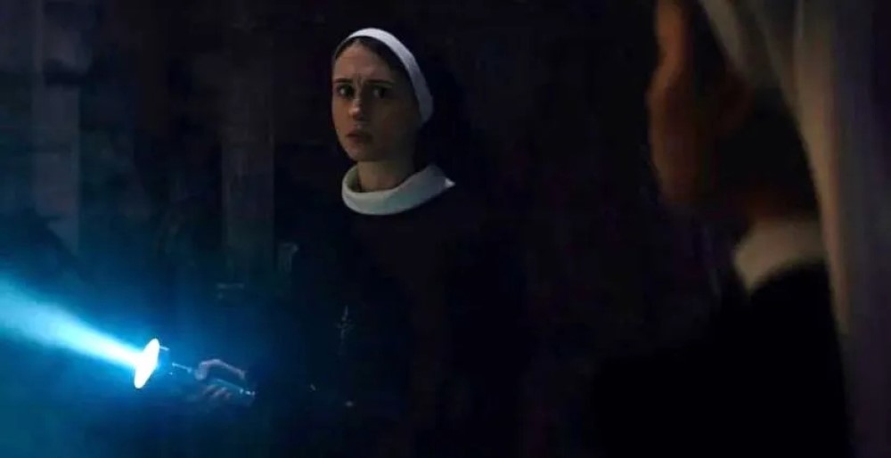 Снимками поделился Collider. На одном из них Валак в исполнении Бонни Ааронс стоит в дверях и жутко улыбается. На другом можно заметить, как злодейка хватает девочку за голову – или это настоящая монахиня, в которую вселилась нечисть. Также засветилась сестра Айрен, к роли которой вернулась Таисса Фармига. Айрен держит фонарик и смотрит на другую монахиню. Сестра Айрен чем-то встревожена.