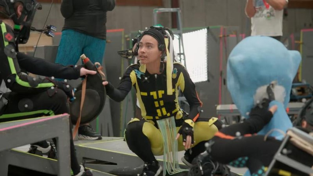 Как пишет The Direct, кадры со съемочной площадки «Аватара 3» включили в специальные материалы к цифровому релизу фильма «Аватар: Путь воды» (2022). На снимках можно увидеть, как Майлз «Паук» Сокорро (Джек Чемпион) передает Цирее (Бэйли Басс) нечто вроде бутылки.