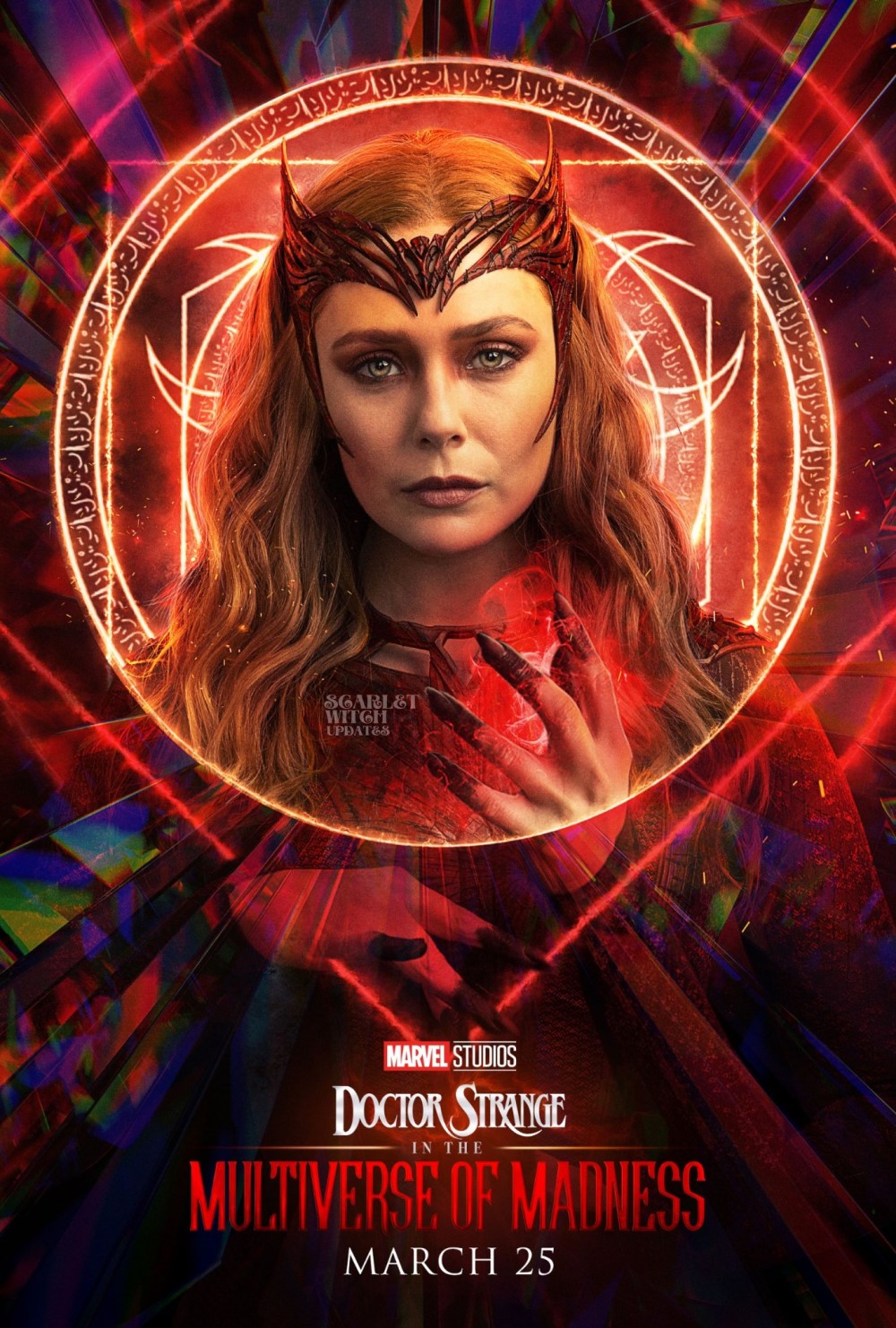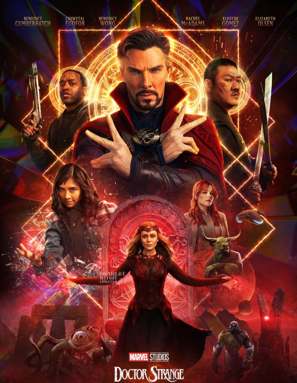 По сюжету Алая Ведьма (Элизабет Олсен) под влиянием темной магии Даркхолда собралась отнять у Америки Чавес (Сочил Гомес) способность перемещаться по мультивселенной, чтобы затем встретиться с альтернативными версиями своих сыновей. Из-за действий Ванды Максимофф мультивселенная могла оказаться в опасности, поэтому Стивен был вынужден сразиться с ней. В финале Ванда осознала ошибку, уничтожила Даркхолды во всех мирах и исчезла под завалами храма Даркхолда.