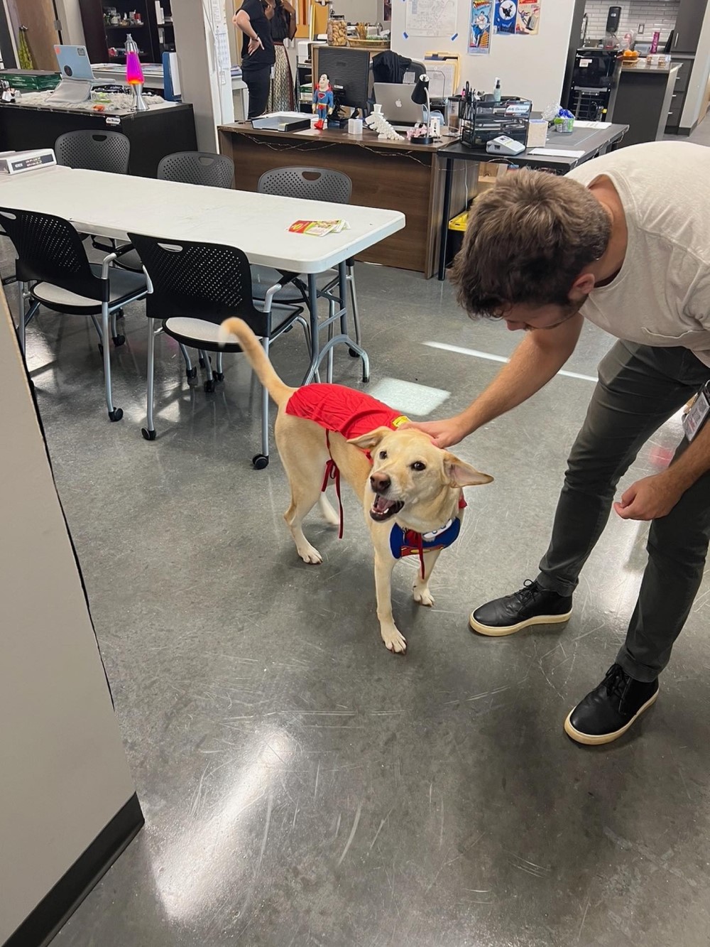 Снимком Ганн поделился у себя в соцсетях. На нем можно увидеть собаку-талисмана художественного отдела «Супермена: Наследие» по кличке Нора. Собака красуется в плаще Супермена, а на заднем плане внимательные поклонники увидели обложки комиксов о Кларке Кенте и его очаровательном приятеле Крипто. Так, можно заметить комиксы «Superman: The Legend Returns» 1988 года, «Lost Boy: A Tale of Krypto the Superdog» 2011-го и 210 выпуск серии «Adventure Comics» 1955-го, где впервые представили Крипто.