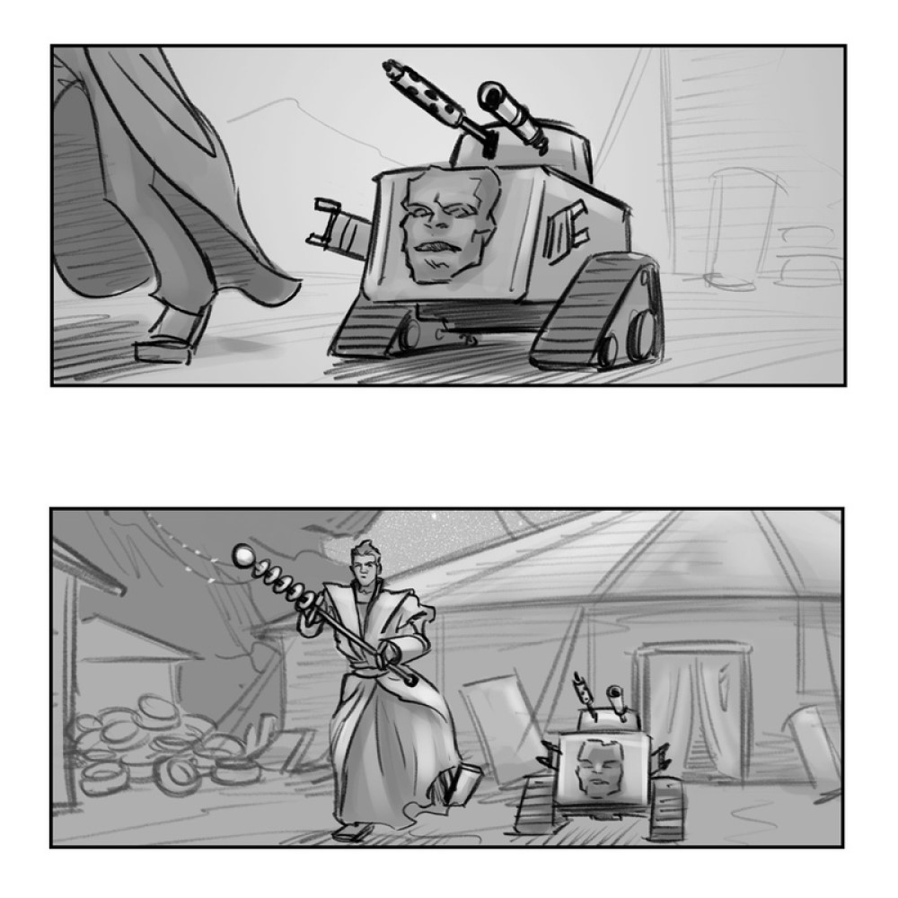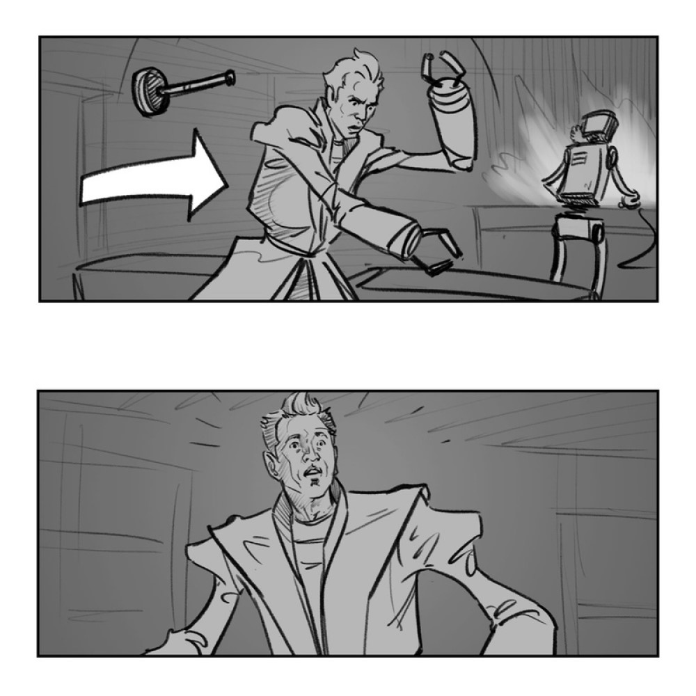 The Direct уточняет, что вырезанный эпизод называется «Луна позора». Как показали на фото, в этой сцене Грандмастер изменил бы Корга, превратив его в нечто вроде маленького танка с головой. Вскоре после преобразования Корга на Луну позора мог напасть главный злодей фильма Горр (Кристиан Бейл), который по сюжету жаждал убить всех богов. Грандмастер на раскадровках явно собирается дать отпор Горру. Такой комедийный персонаж в экшен-сцене с битвой наверняка смотрелся бы странно.