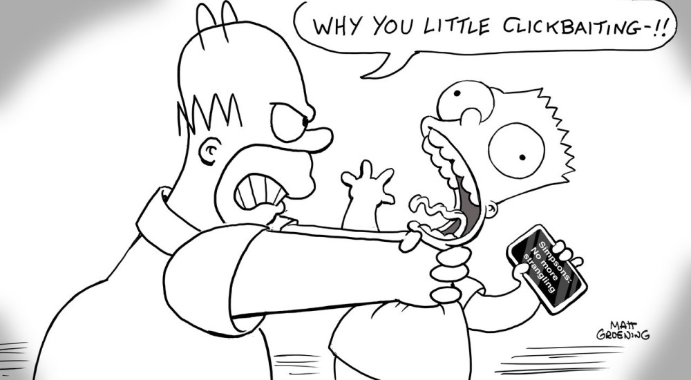 В соцсетях «Симпсонов» прокомментировали информацию. Там выложили забавное изображение, на котором Гомер душит Барта и произносит обновленную версию своей фирменной фразы: «Ах ты маленький кликбейтер!!». На картинке подпись Мэтта Гроунинга, так что ее можно посчитать за полноценное обращение автора к журналистам, которые написали и утвердили ту самую новость. Комментарий к посту не менее смешной: