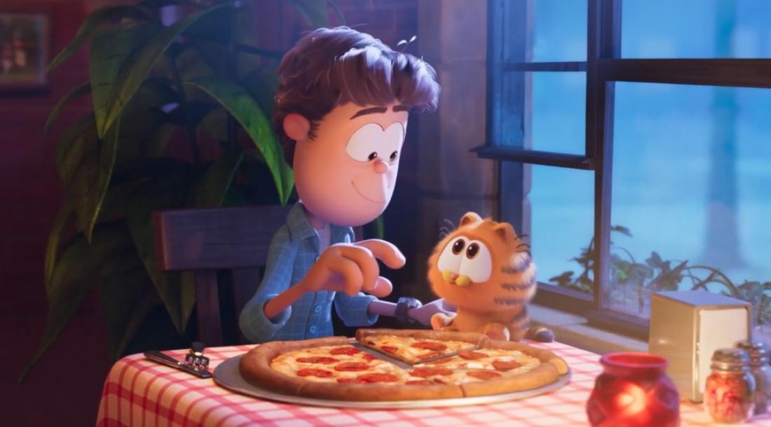 В забавном ролике Джон – будущий хозяин Гарфилда – в одиночку ест пиццу в ресторане и печально наблюдает за тем, как другие люди наслаждаются трапезой в большой компании. Неожиданным спутником Джона на ужине становится милый котенок, у которого не по годам зверский аппетит.