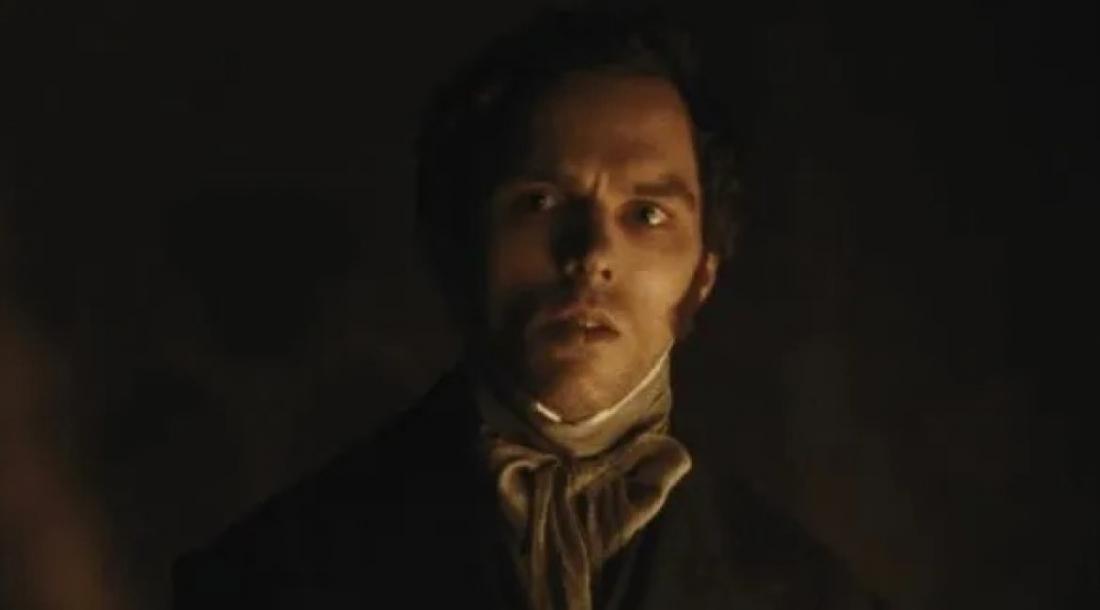 На снимке хорошо можно рассмотреть только Николаса Холта (франшиза «Люди Икс»). Его герой Томас тревожно смотрит на своего собеседника Орлока, который стоит к нему спиной. Лицо Орлока размыта, но видно, что тип жуткий. В оригинале у Макса Шрека был довольно страшный грим – новый Орлок явно тоже будет пугающим.