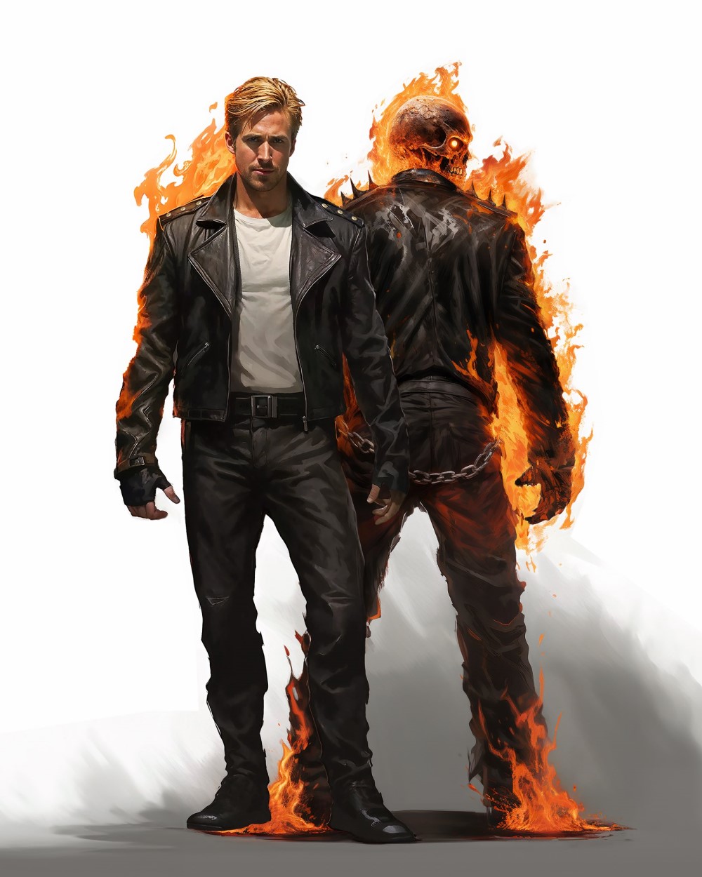 В Сеть утек слух, что Райан Гослинг может сыграть Призрачного гонщика в фильмах киновселенной Marvel. Один талантливый художник на фоне этого создал огненный фан-арт со звездой «Барби» (2023) и «Бегущего по лезвию 2049» (2017) в образе Джонни Блэйза.