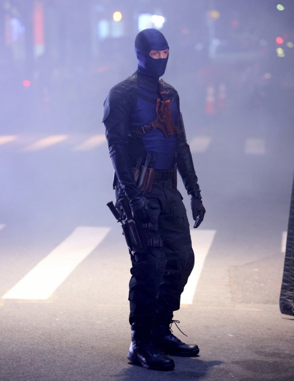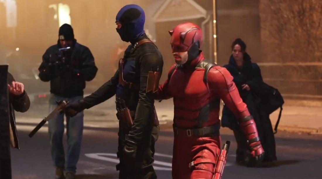 Судя по видео, в этой сцене Меченый решит в кого-то выстрелить, а Сорвиголова ему помешает. Возможно, на площадке работают дублеры (далее в тексте возможные крупные спойлеры).