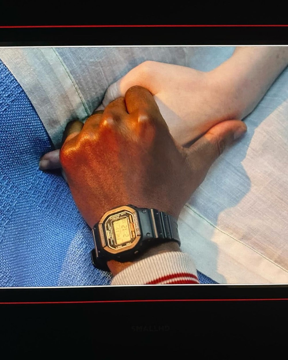 На фото Сэди Синк лежит на кровати, а Калеб Маклафлин сидит рядом с ней. Актеры улыбаются, но, скорее всего, они на фото еще не играют. В 4 сезоне Макс впала в кому, так что в эпизоде она наверняка будет без сознания.