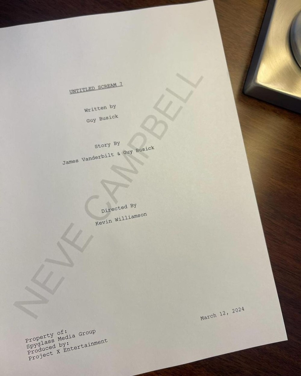 О своем возвращении во вселенную «Крика» Нив Кэмпбелл сообщила в соцсетях. Там же она выложила фото со сценарием, на котором указано, что фильм снимет создатель франшизы Кевин Уильямсон. Он написал сценарий для самого первого «Крика» (1996) и работал над последующими главами. Сценаристами «Крика 7» выступают авторы двух предыдущих частей Джеймс Вандербилт и Гай Бусик. В комментарии к посту Кэмпбелл написала: