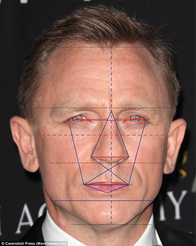 Для исследования фотопортреты всех актеров проверяли на пропорциональность с помощью формулы золотого сечения лица. Лицо Крэйга только на 84% совпадает с «идеалом», в то время как несомненный лидер рейтинга Шон Коннери может похвастаться «совершенными» 89,2%.