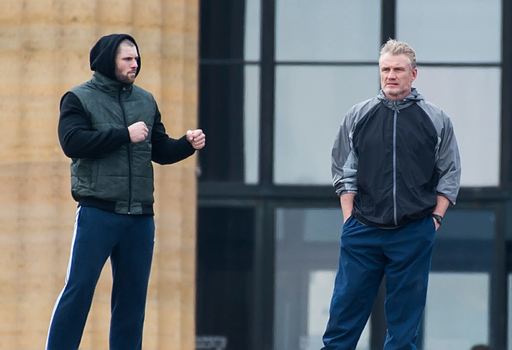 На фотографиях, опубликованных папарацци, Лундгрен стоит рядом со своим партнером по съемочной площадке - Флорианом Мунтяном, который играет роль сына Ивана – Виктора.