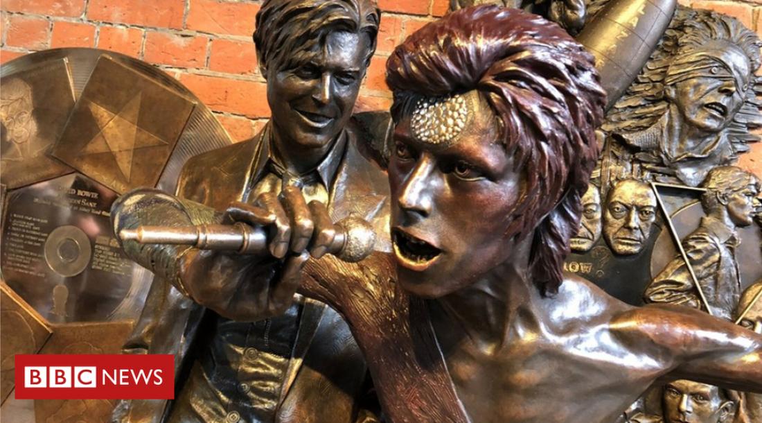 Выполненная из бронзы скульптура под названием «Земной посланник» появилась в самом центре города. Боуи увековечили вместе со своими сценическими образами, которые также представлены в скульптурной композиции, сообщает Би-би-си.