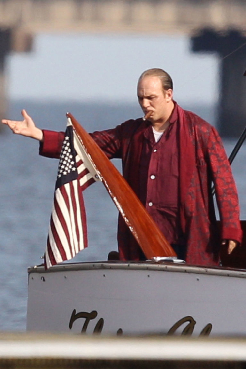 Если раньше актер делился с нами кадрами из эпизодов, которые снимались в тюрьме, то теперь глава чикагской мафии предстает в опрятном виде на яхте с американским флагом. Судя по всему, фото сделано во время съемок одного из флэшбэков (по сюжету Аль Капоне, находясь в тюрьме, вспоминает эпизоды из своей жизни).