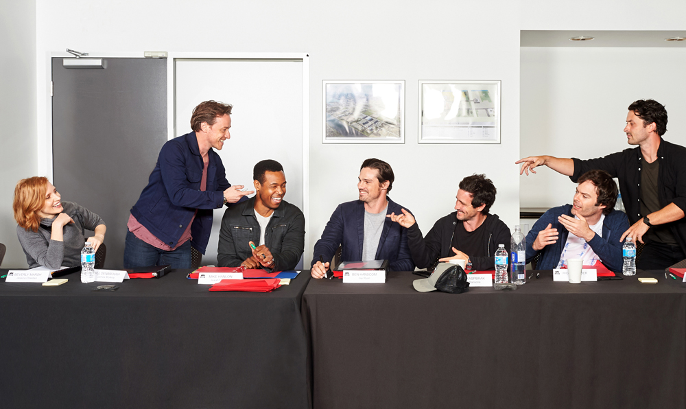 Эпичности у опубликованного снимка хоть отбавляй - эта компания не могла сделать обычное фото: Джессика Честейн, Джеймс МакЭвой, Айзая Мустафа, Джей Райан, Джеймс Рэнсон, Билл Хейдер и Энди Бин расположились так, будто они герои современной версии «Тайной вечери».