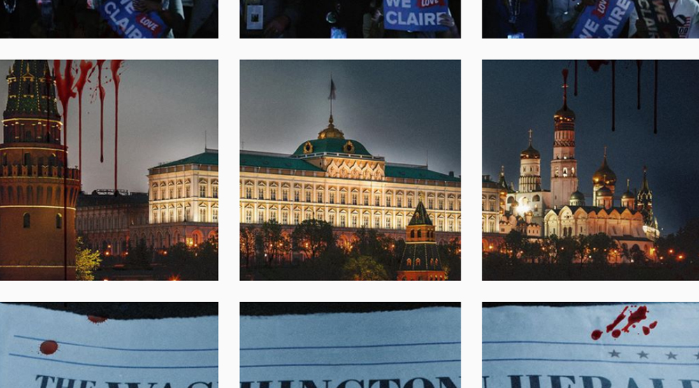 Три снимка, опубликованные в Instagram-аккаунте сериала, составляют панораму Кремля со стороны Москвы-реки. Каждая фотография подписана короткой фразой, которые в итоге складываются в послание: