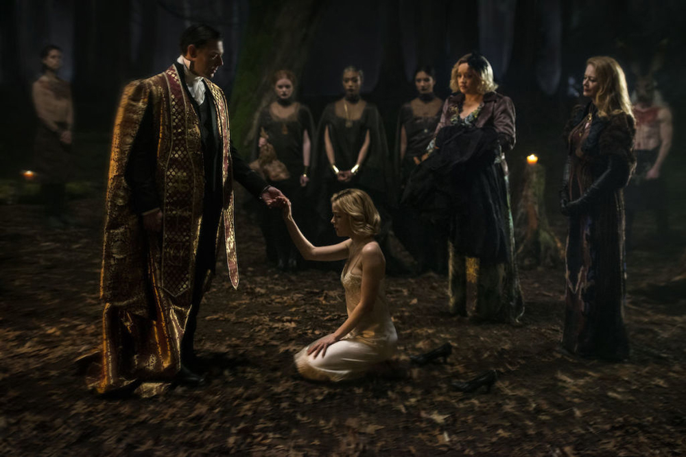 На первых кадрах мы можем хорошо рассмотреть образ самой Сабрины, которую сыграла Кирнан Шипка. На одном снимке изображена героиня с, возможно, волшебной метлой в руке, а на другом - некий обряд с участием Сабрины:
